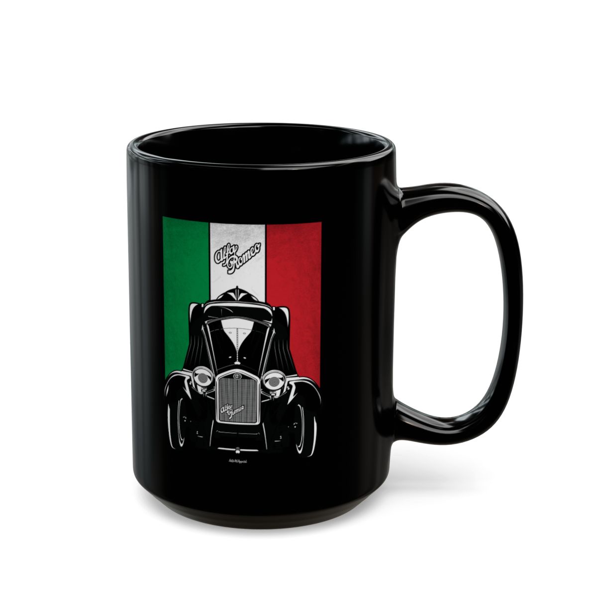 True appreciation for the Alfa Romeo 8C carries into the small details. This mug offers a refined way to represent your favorite car during your daily coffee ritual. The flag variant adds a heritage-inspired touch to the overall look. An excellent Alfa Romeo 8C mug gift idea.