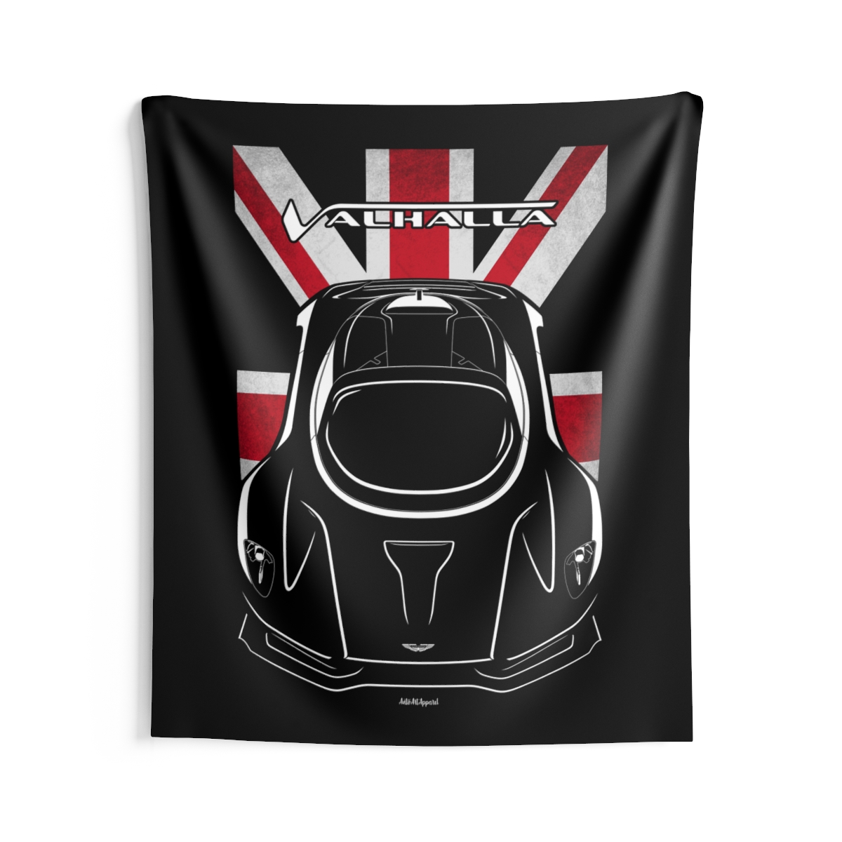 The spirit of the Aston Martin Valhalla extends beyond the driveway. This tapestry delivers a bold visual statement while maintaining a clean and tasteful look. This edition includes subtle flag elements that strengthen the connection to the car’s origin. A thoughtful Aston Martin Valhalla tapestry gift for automotive enthusiasts.