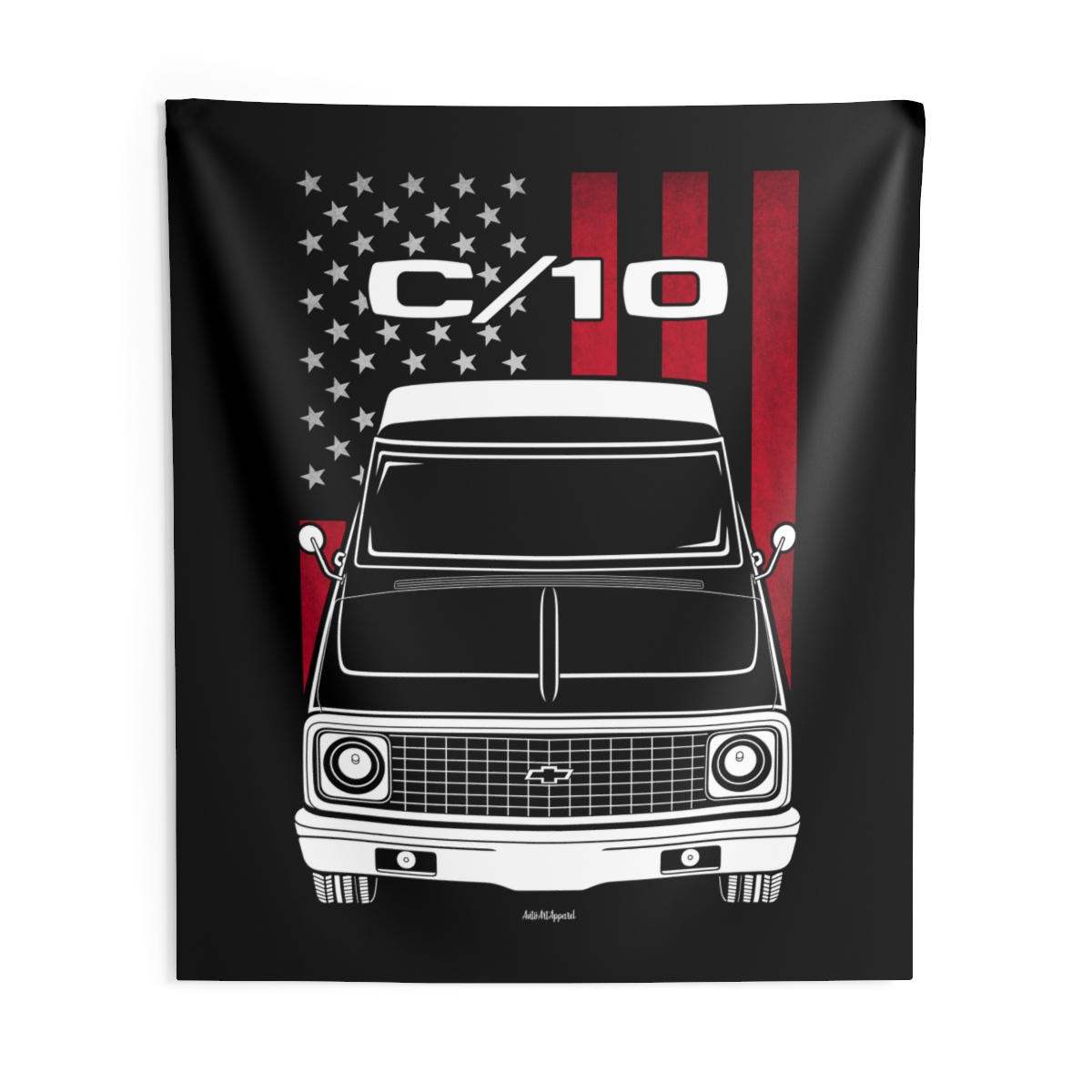 This Chevrolet C10 tapestry is made for enthusiasts who want their environment to reflect their automotive passion. Large-scale design, clean composition, and a clear respect for the car itself. The flag-inspired version introduces a distinctive accent tied to the car’s roots. A perfect Chevrolet C10 tapestry for serious car fans.