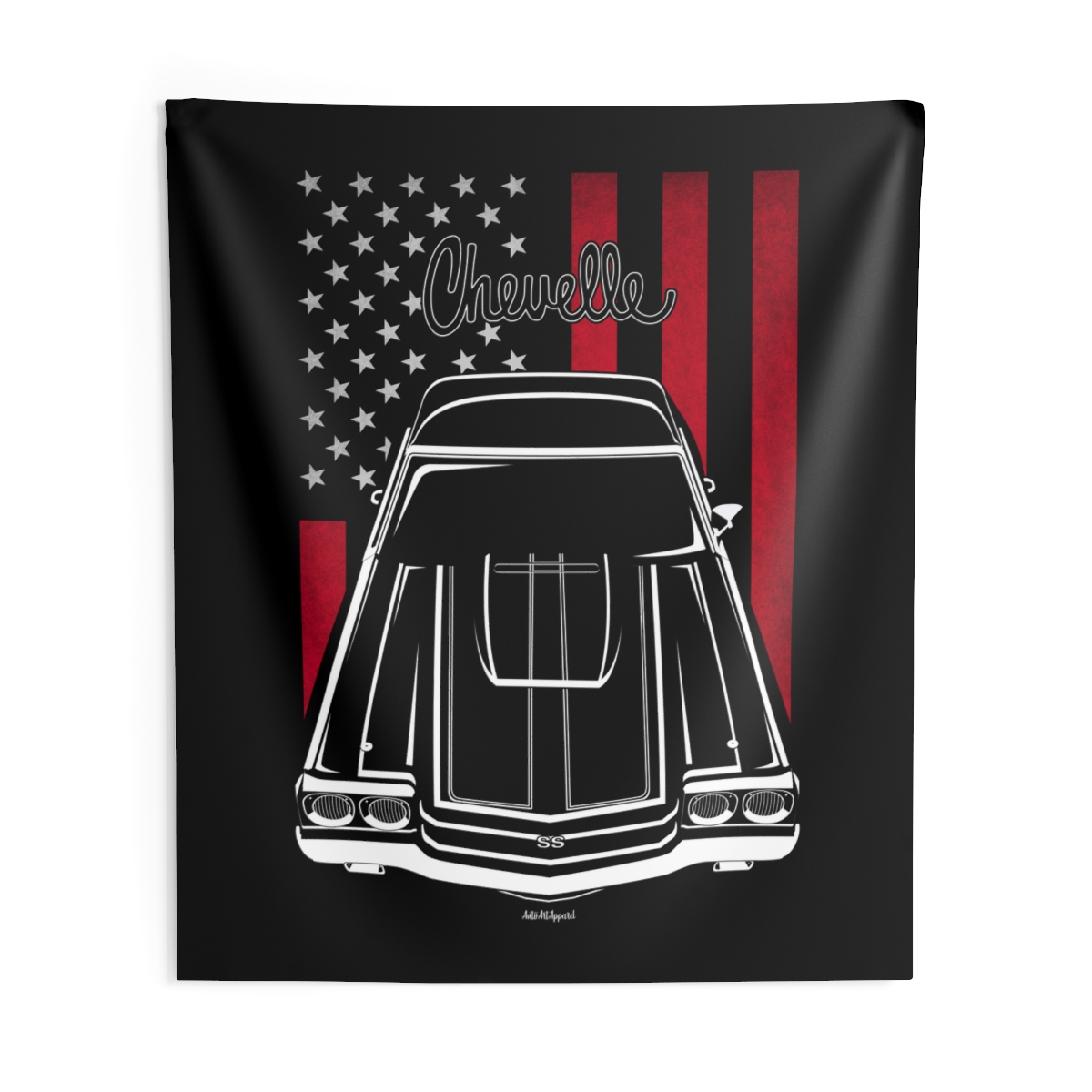 If the Chevrolet Chevelle is part of your lifestyle, this wall tapestry brings that energy into your personal space. Perfect for garages, gaming rooms, or creative setups that reflect real car culture. Flag detailing gives this version added depth and character. A great Chevrolet Chevelle tapestry for passionate drivers and enthusiasts.