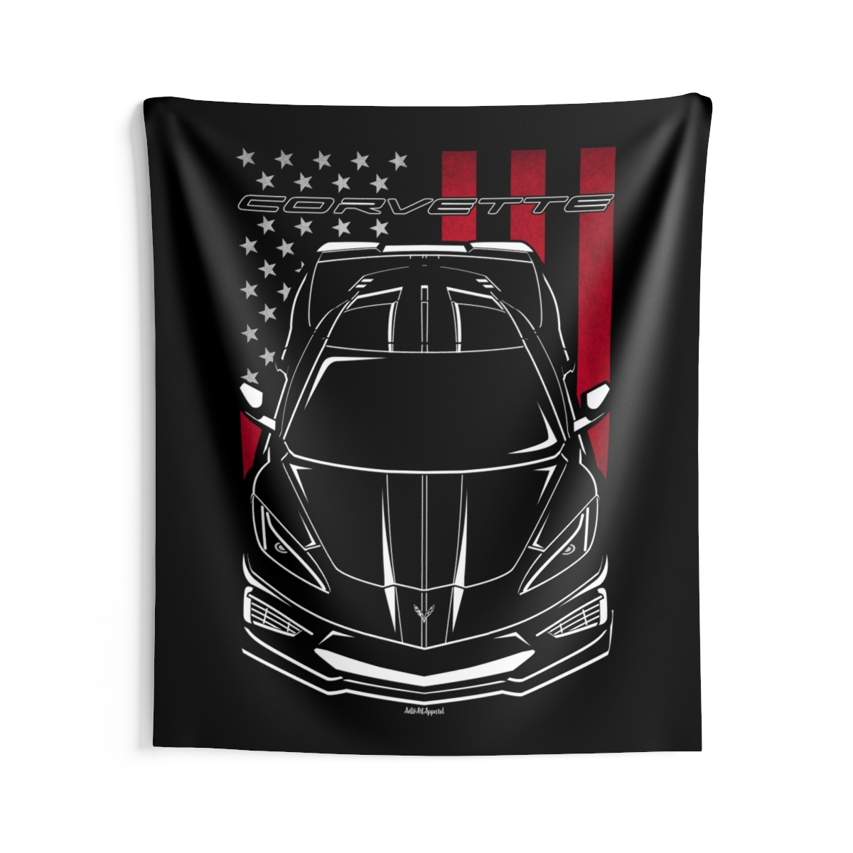 For those who connect with the Chevrolet Corvette, this wall tapestry offers a larger canvas to showcase that passion. Designed to create atmosphere while staying visually balanced and refined. The flag styling introduces an extra layer of identity without overwhelming the design. An ideal Chevrolet Corvette tapestry gift for dedicated automotive fans.
