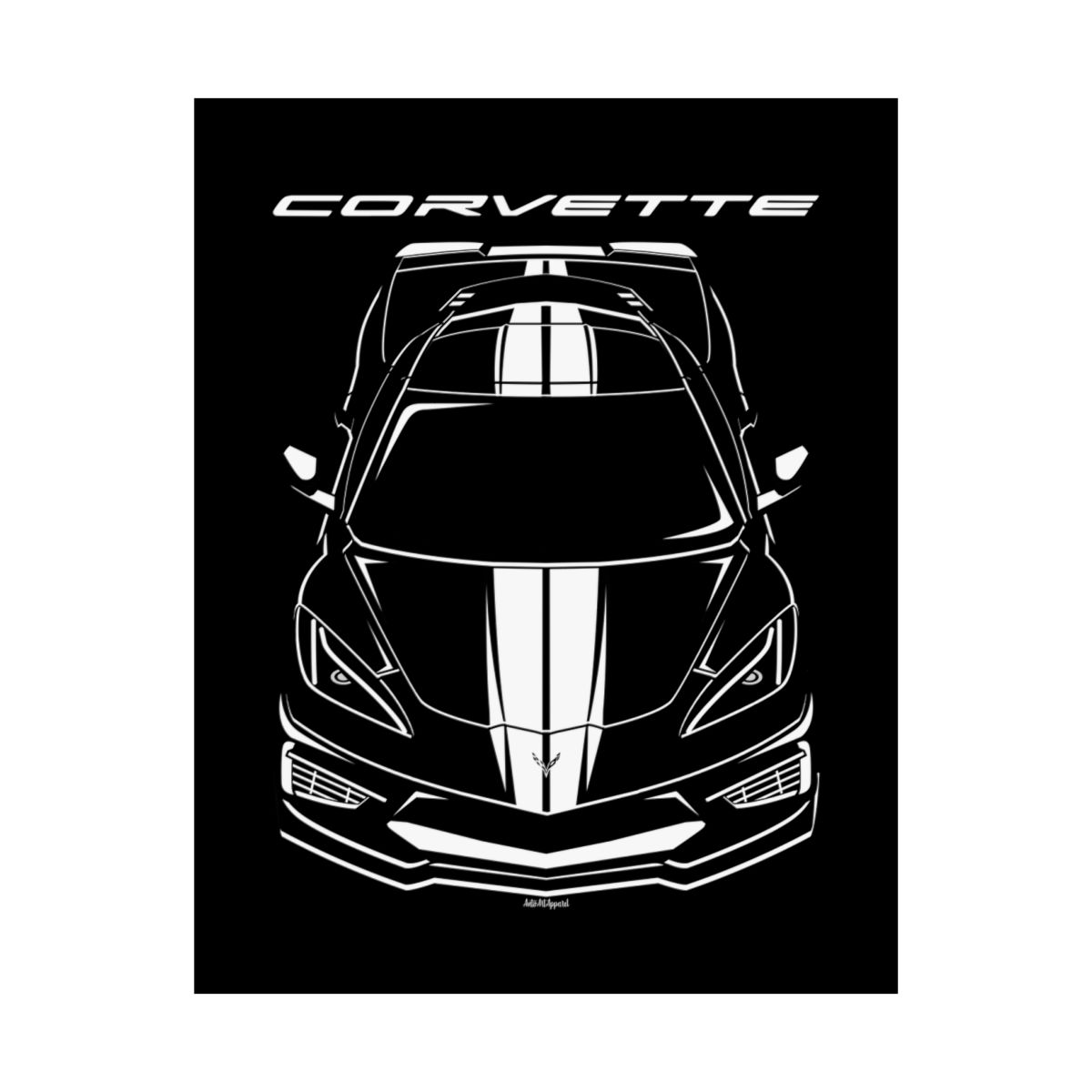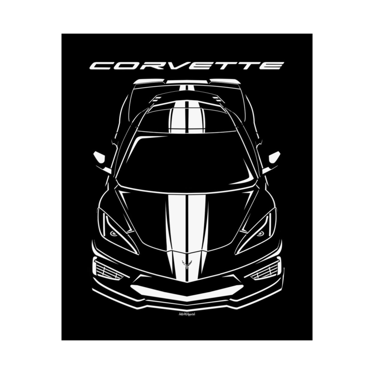 Chevrolet Corvette C8 White Stripes Poster