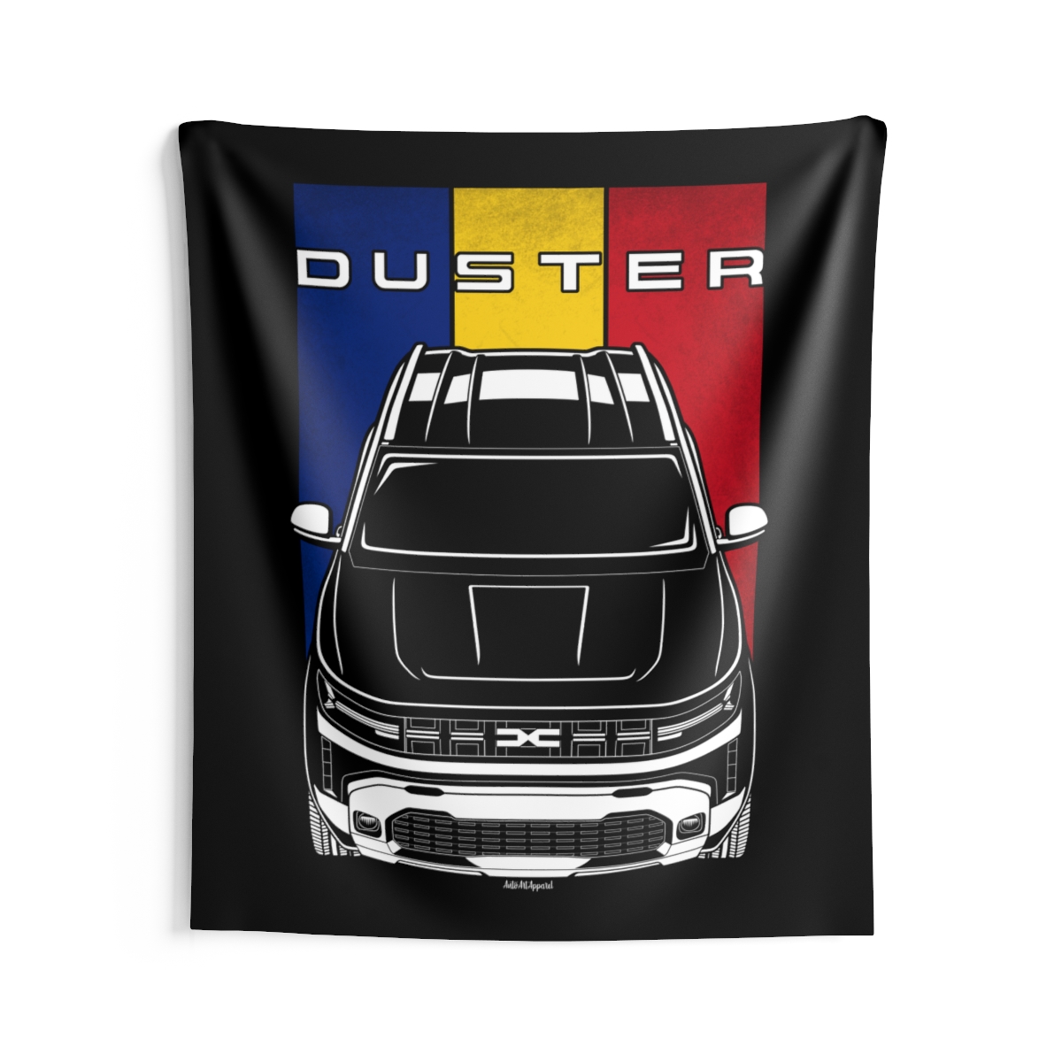 Appreciation for the Dacia Duster deserves space to be seen. This tapestry offers a striking yet refined way to display that admiration in any room or garage. The flag variant adds a heritage-inspired layer to the design. An excellent Dacia Duster tapestry gift idea.