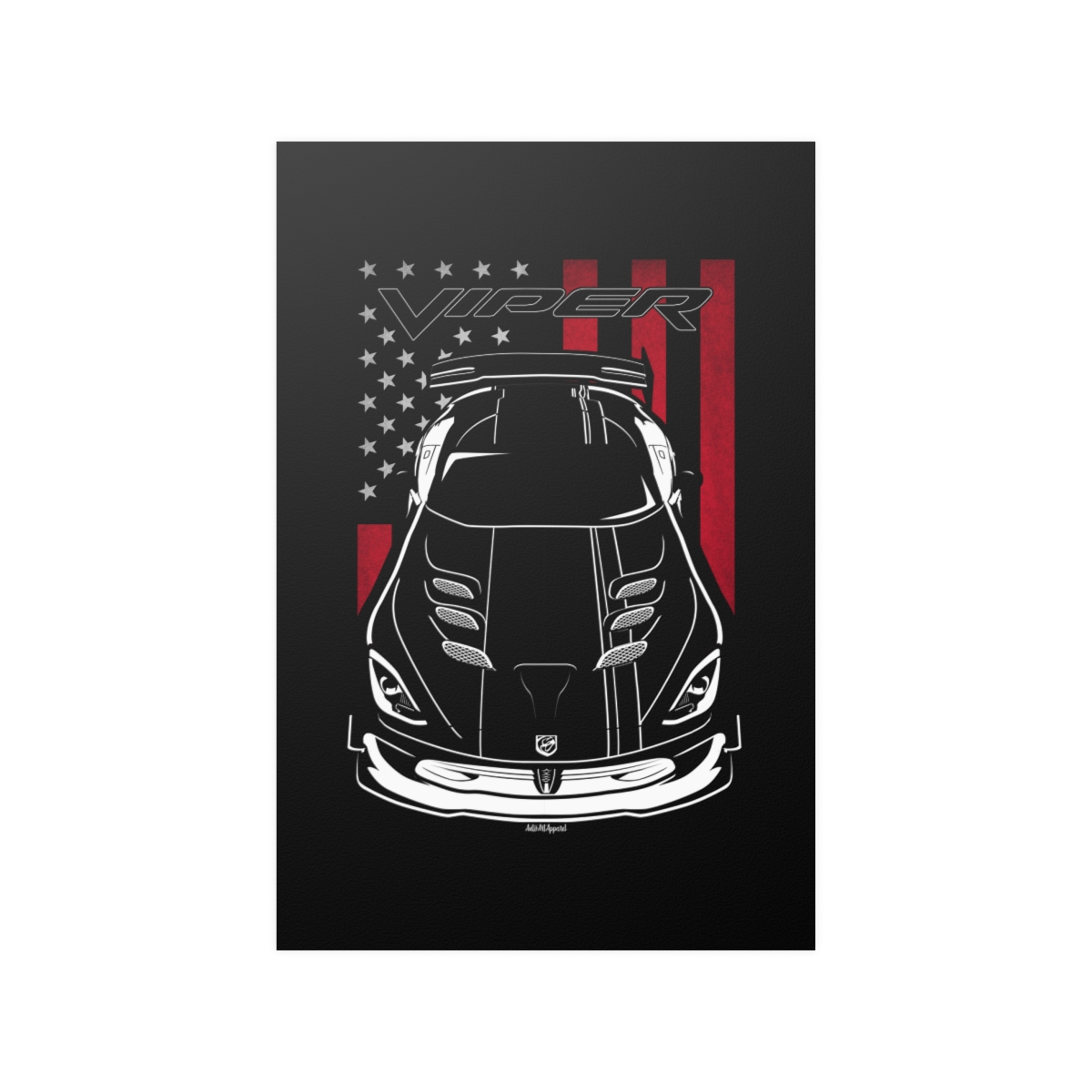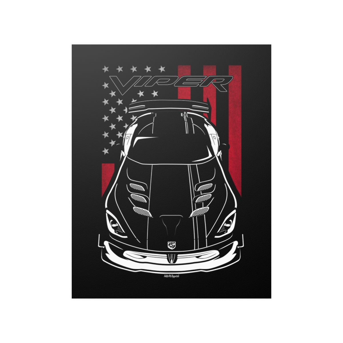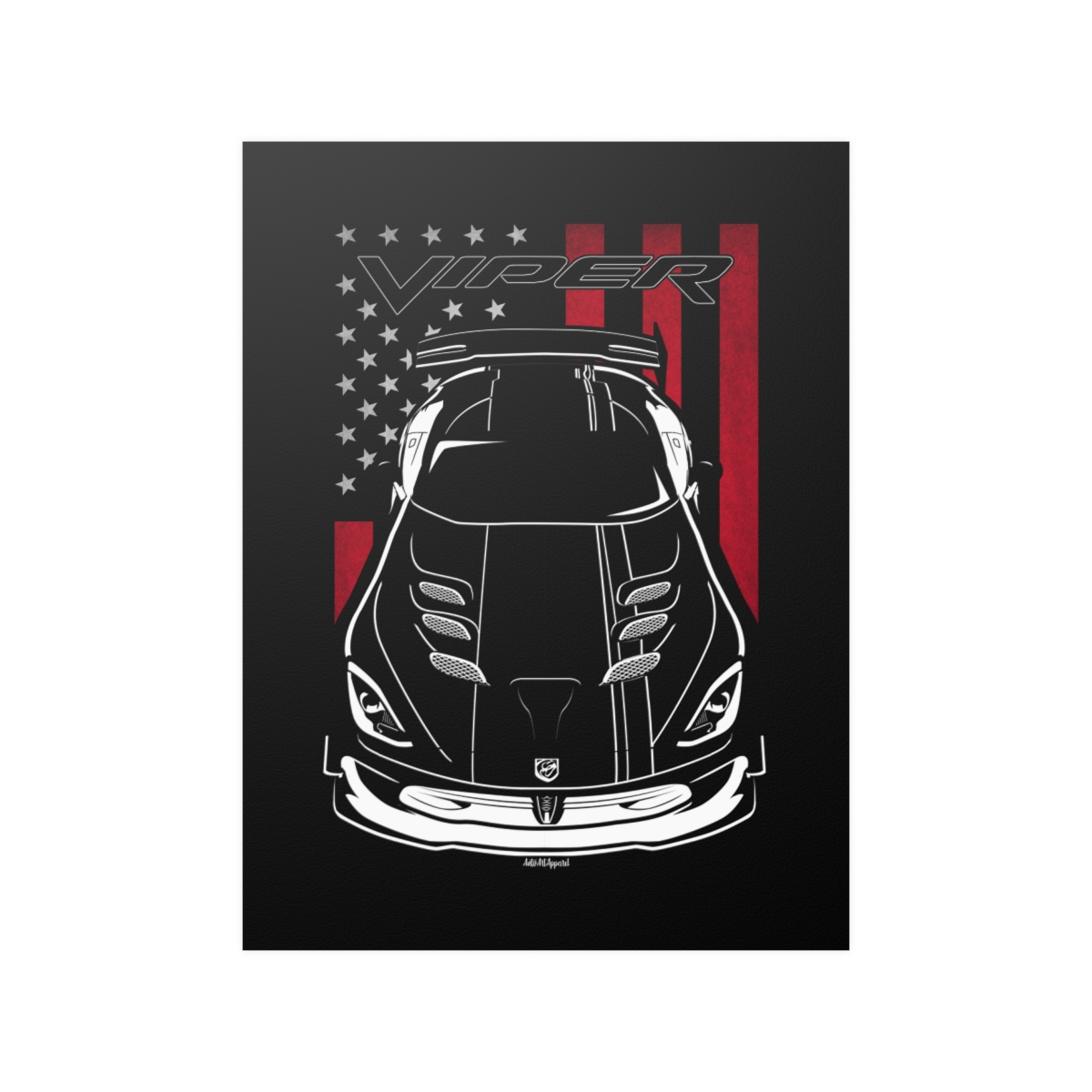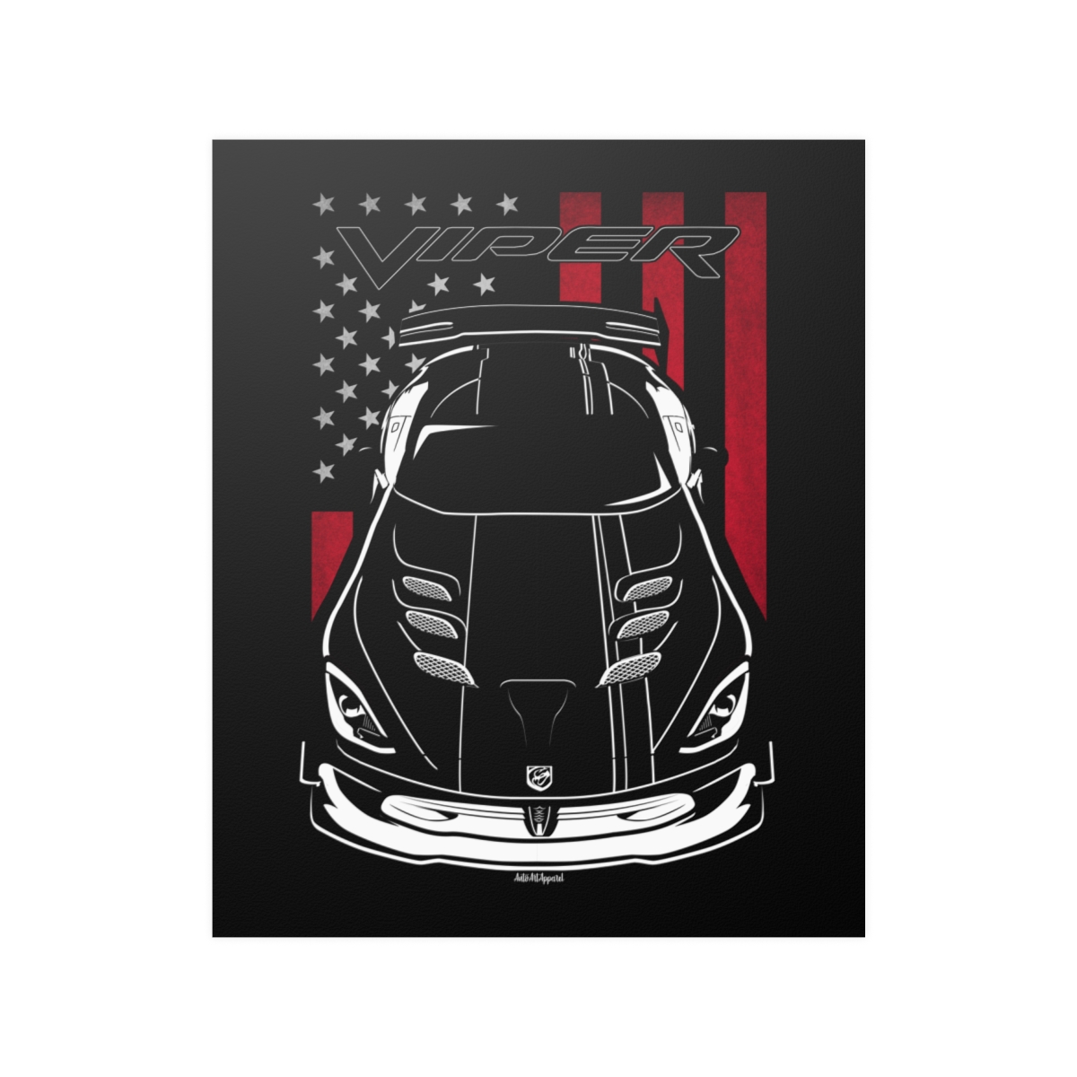 This Dodge Viper poster is created for enthusiasts who value clean automotive art and authentic representation. Designed to elevate your space while honoring the car itself. The flag-inspired version introduces a distinctive visual accent tied to the car’s roots. A perfect Dodge Viper poster for serious car fans.