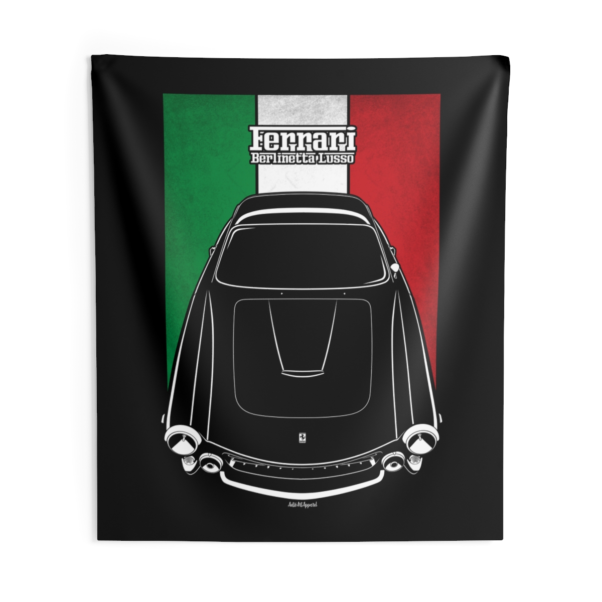 This Ferrari 250 GT tapestry is made for enthusiasts who want their environment to reflect their automotive passion. Large-scale design, clean composition, and a clear respect for the car itself. The flag-inspired version introduces a distinctive accent tied to the car’s roots. A perfect Ferrari 250 GT tapestry for serious car fans.