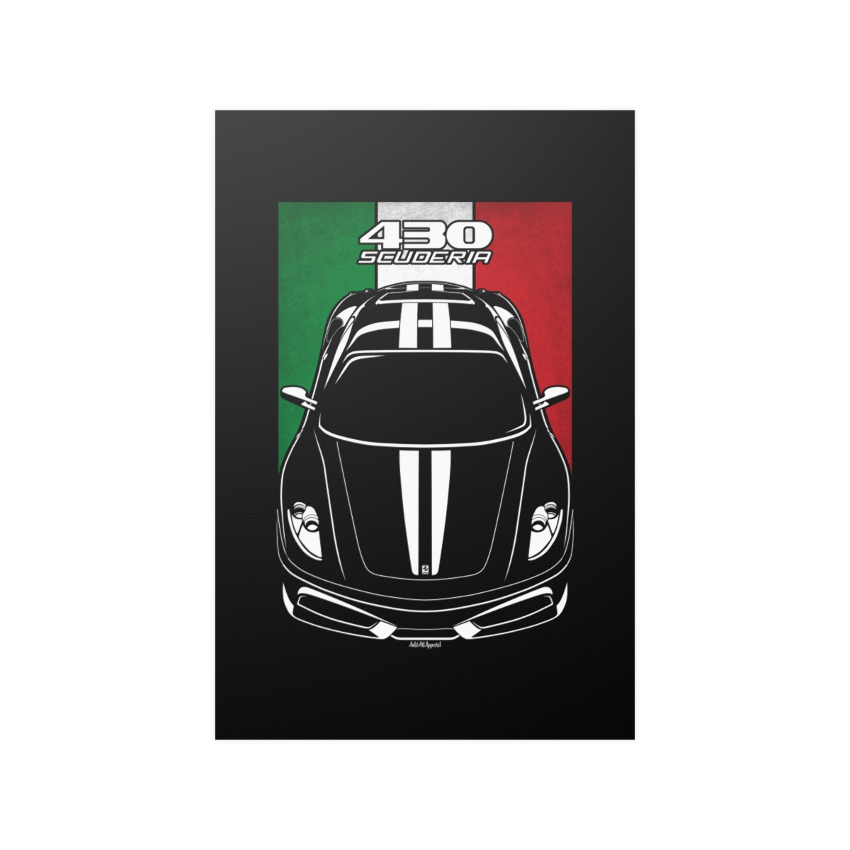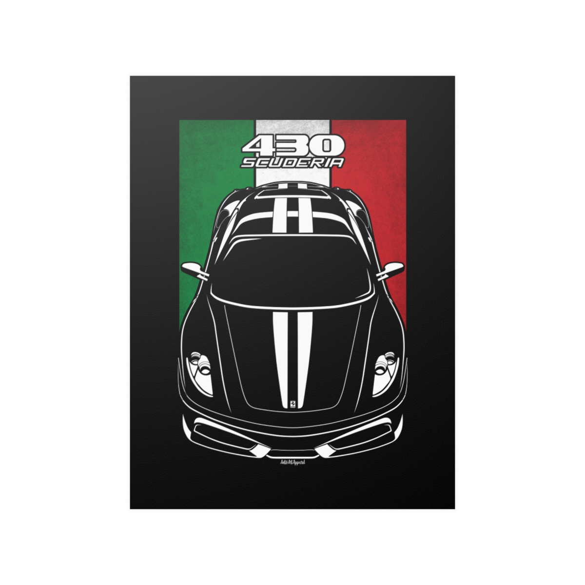 The Ferrari 430 deserves more than a passing mention, it deserves wall space. This premium poster captures the presence of the car in a clean and refined format, perfect for garages, offices, or personal spaces. The flag version introduces a subtle heritage element that complements the artwork without overpowering it. A striking Ferrari 430 poster gift for true automotive enthusiasts.