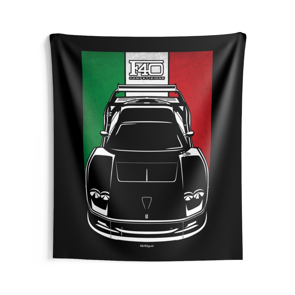 This Ferrari F40 tapestry is made for enthusiasts who want their environment to reflect their automotive passion. Large-scale design, clean composition, and a clear respect for the car itself. The flag-inspired version introduces a distinctive accent tied to the car’s roots. A perfect Ferrari F40 tapestry for serious car fans.