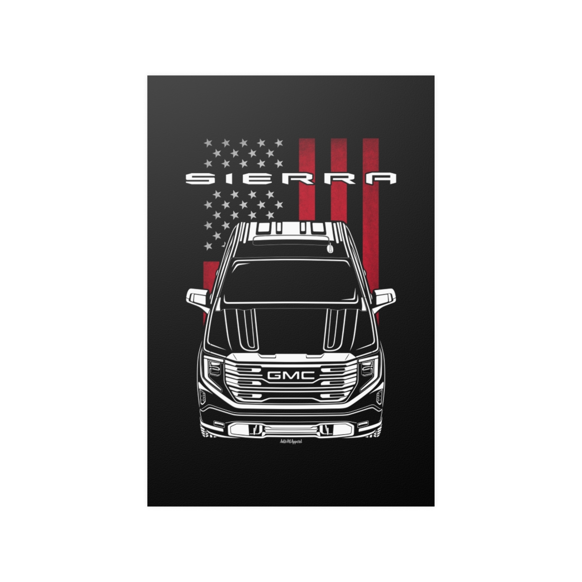 For fans of the GMC Sierra, this poster brings the car’s character into your space with a balanced, detail-focused design. Made to stand out without feeling excessive. The flag styling adds a tasteful layer of identity and origin. An ideal GMC Sierra poster gift for dedicated car lovers.