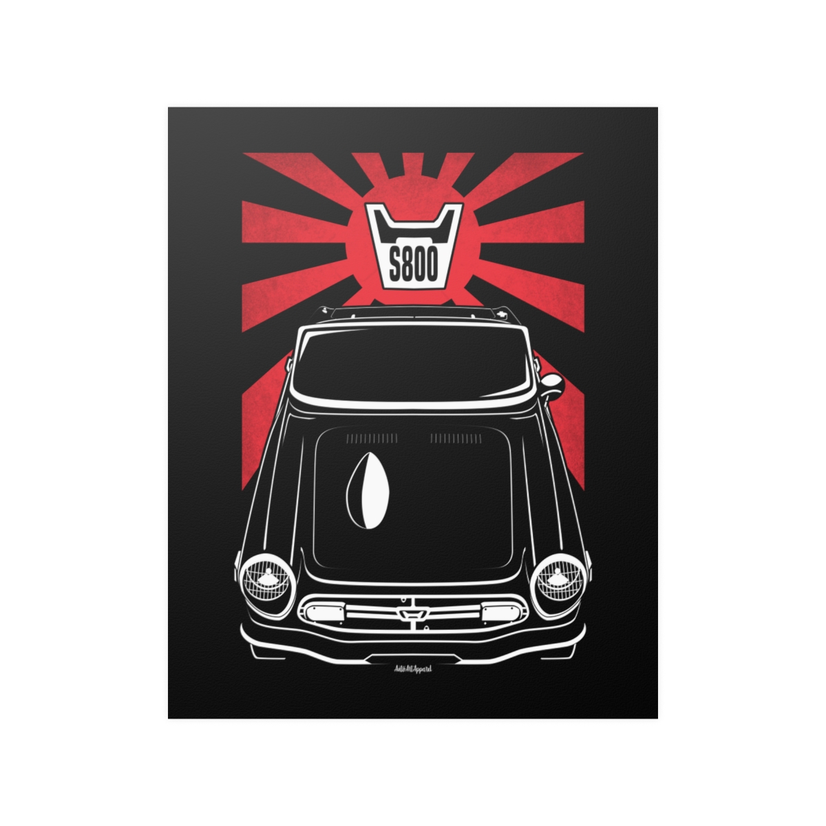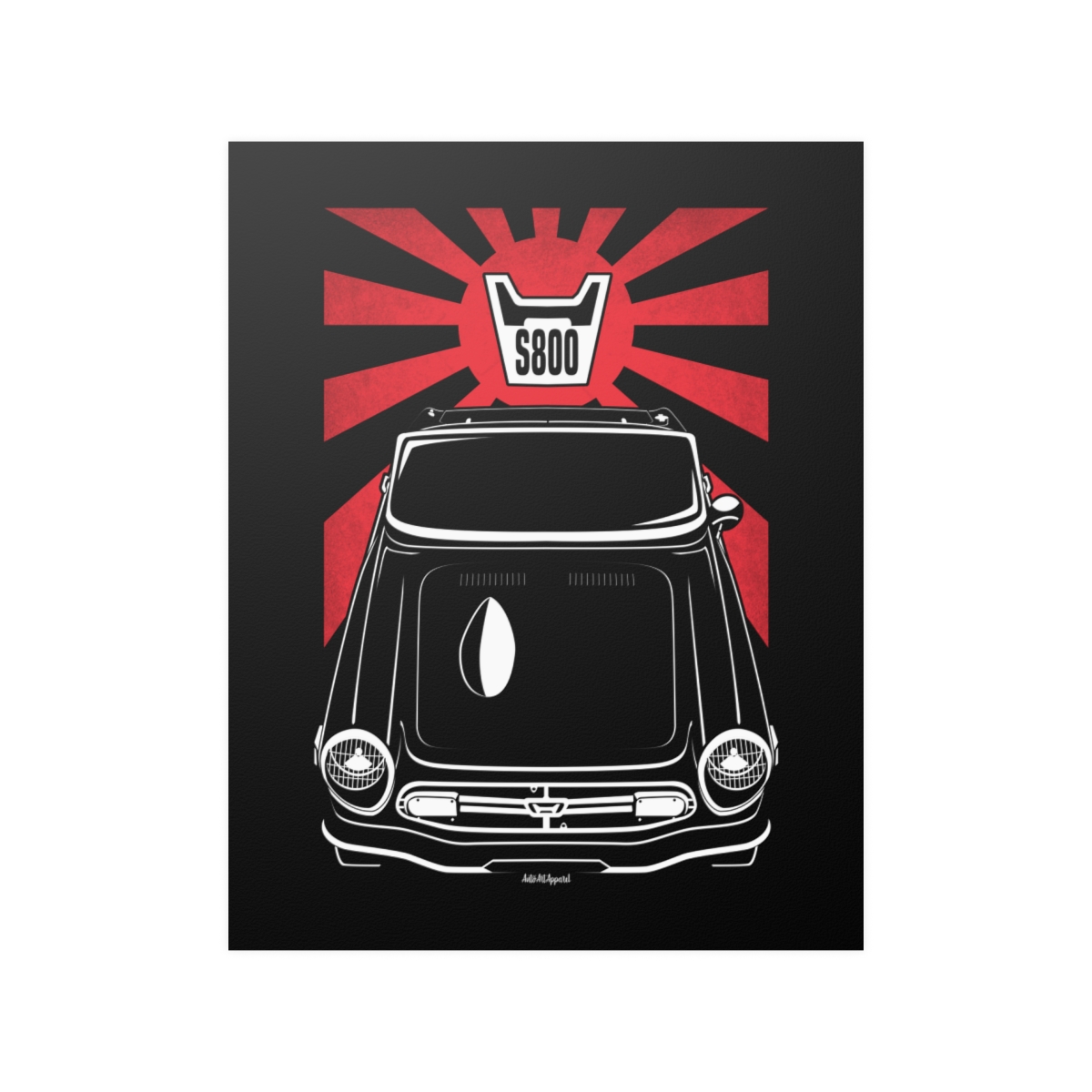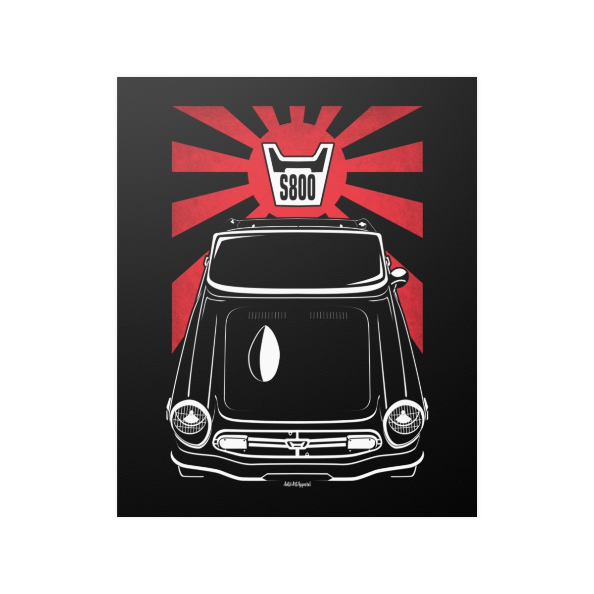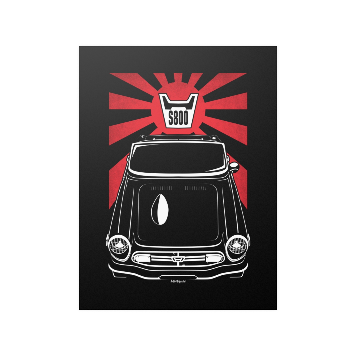 The Honda S800 deserves more than a passing mention, it deserves wall space. This premium poster captures the presence of the car in a clean and refined format, perfect for garages, offices, or personal spaces. The flag version introduces a subtle heritage element that complements the artwork without overpowering it. A striking Honda S800 poster gift for true automotive enthusiasts.