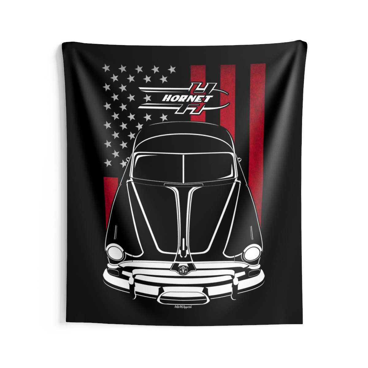 If the Hudson Hornet is part of your lifestyle, this wall tapestry brings that energy into your personal space. Perfect for garages, gaming rooms, or creative setups that reflect real car culture. Flag detailing gives this version added depth and character. A great Hudson Hornet tapestry for passionate drivers and enthusiasts.