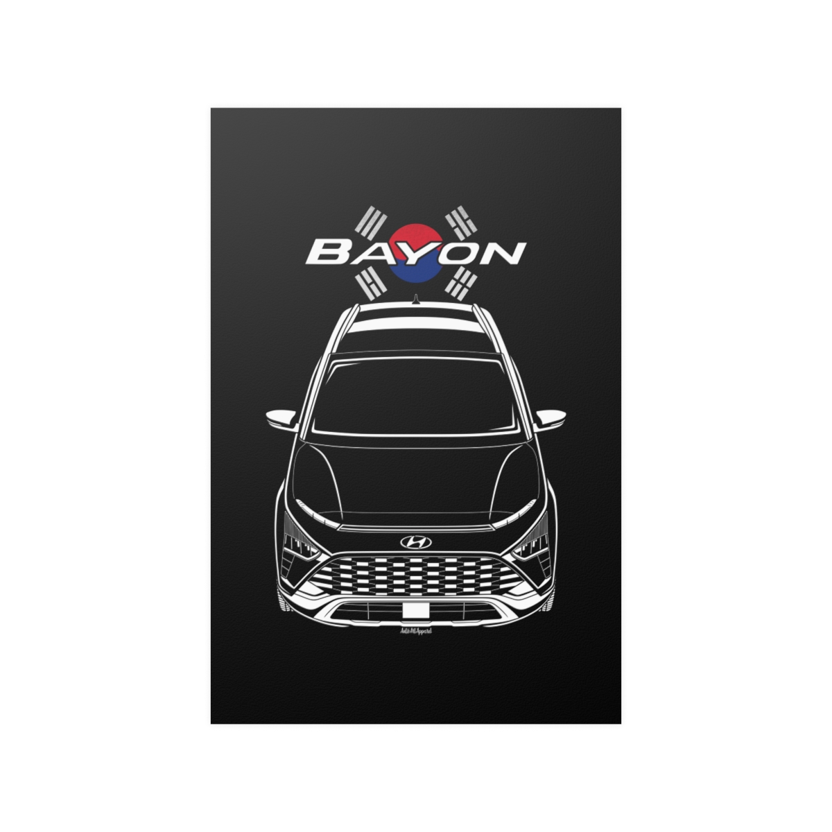 The Hyundai Bayon has earned its place in automotive culture, and this poster presents it in a clean, art-focused format. Sharp details and balanced composition make it suitable for any garage or interior space. This edition includes subtle flag elements that enhance the car’s story. A thoughtful Hyundai Bayon poster gift for automotive enthusiasts.