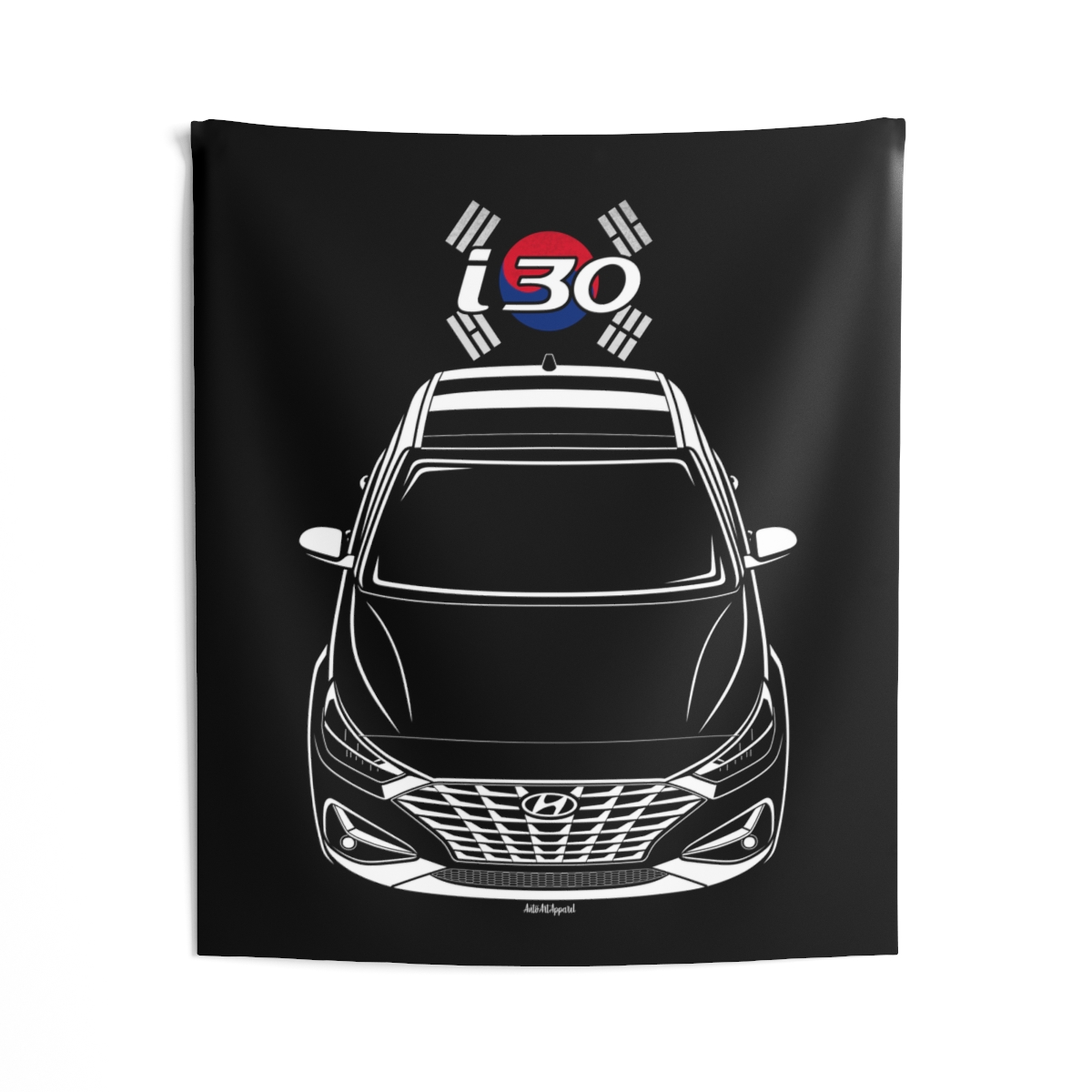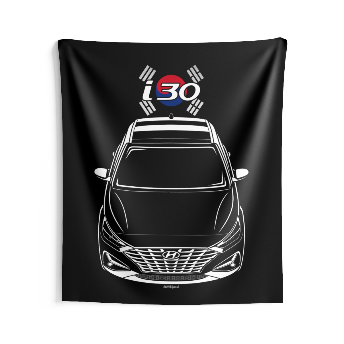 For those who connect with the Hyundai i30, this wall tapestry offers a larger canvas to showcase that passion. Designed to create atmosphere while staying visually balanced and refined. The flag styling introduces an extra layer of identity without overwhelming the design. An ideal Hyundai i30 tapestry gift for dedicated automotive fans.