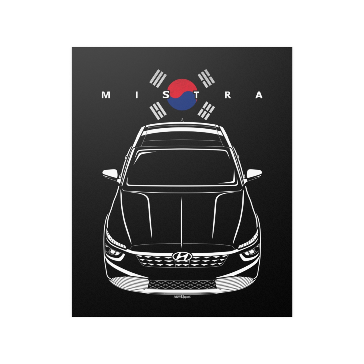 The Hyundai Mistra has earned its place in automotive culture, and this poster presents it in a clean, art-focused format. Sharp details and balanced composition make it suitable for any garage or interior space. This edition includes subtle flag elements that enhance the car’s story. A thoughtful Hyundai Mistra poster gift for automotive enthusiasts.