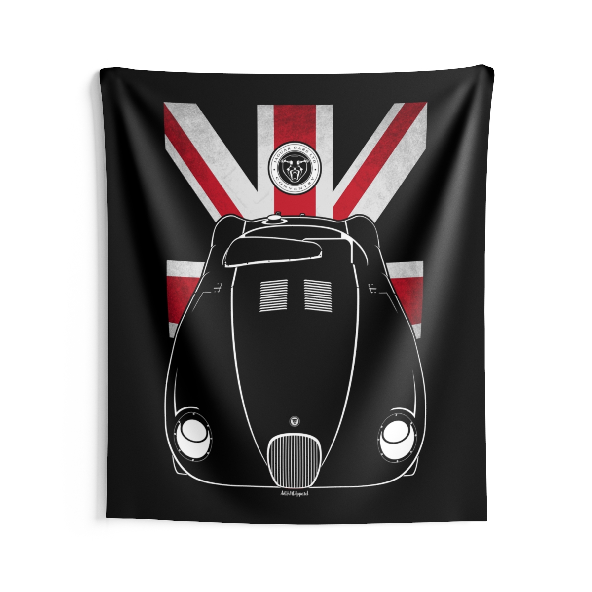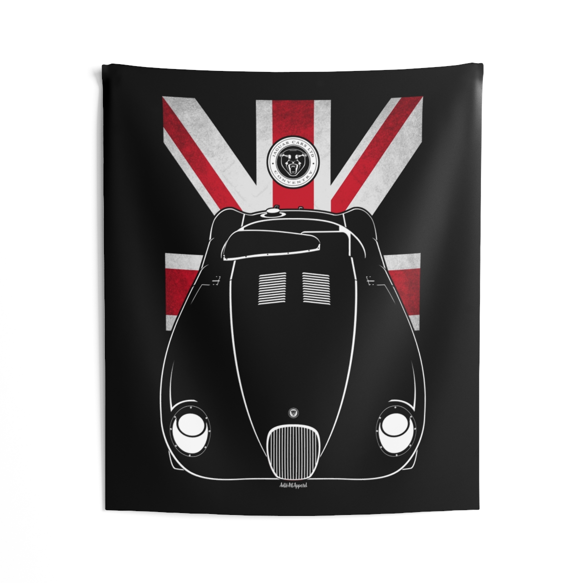 For those who connect with the Jaguar C-Type, this wall tapestry offers a larger canvas to showcase that passion. Designed to create atmosphere while staying visually balanced and refined. The flag styling introduces an extra layer of identity without overwhelming the design. An ideal Jaguar C-Type tapestry gift for dedicated automotive fans.