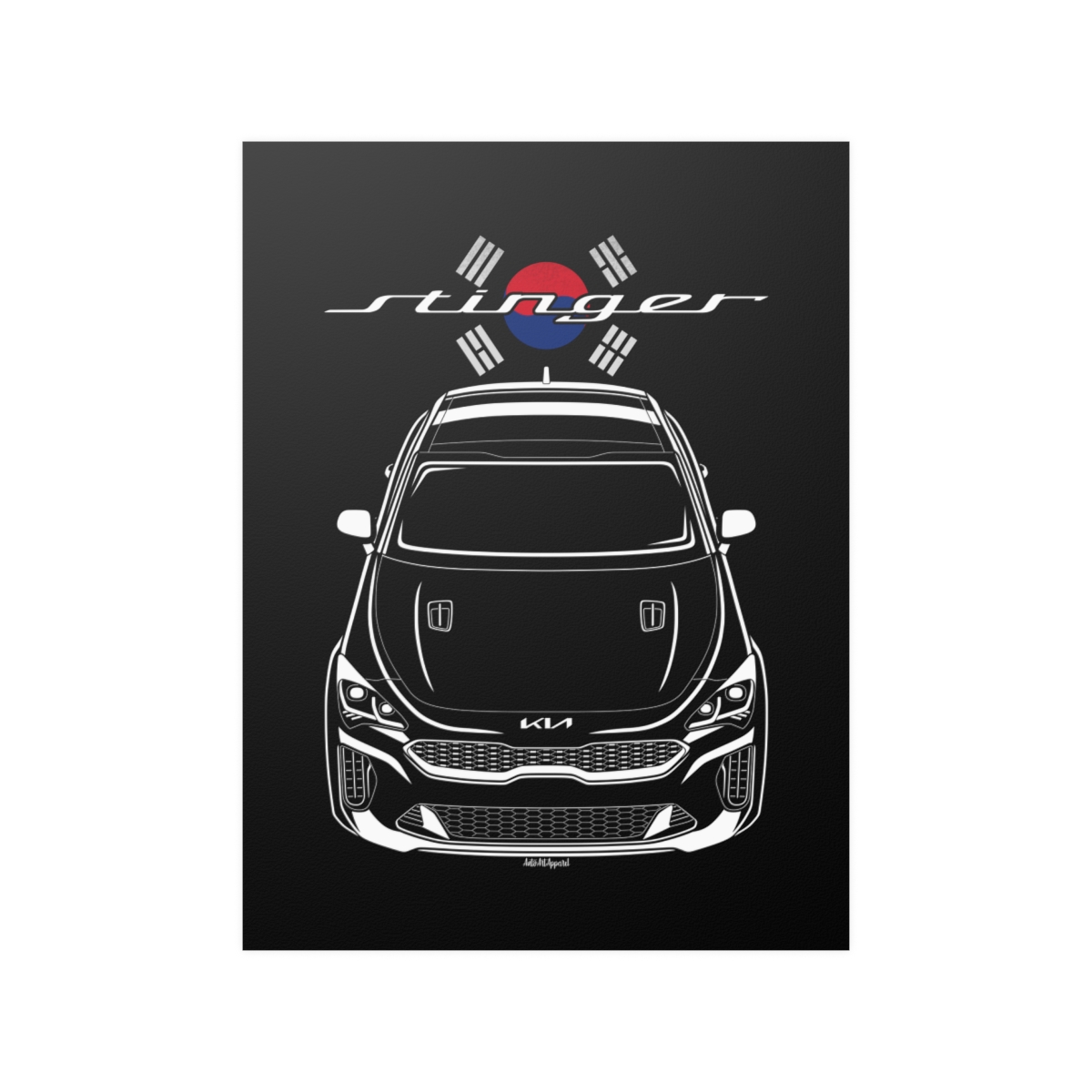 The Kia Stinger has earned its place in automotive culture, and this poster presents it in a clean, art-focused format. Sharp details and balanced composition make it suitable for any garage or interior space. This edition includes subtle flag elements that enhance the car’s story. A thoughtful Kia Stinger poster gift for automotive enthusiasts.