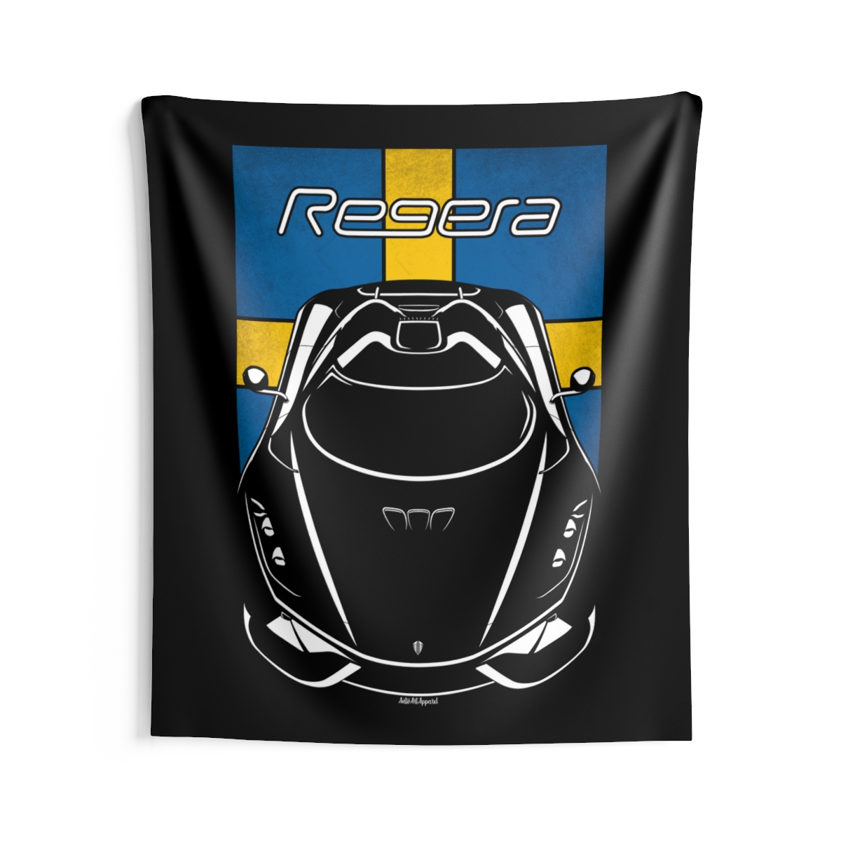 The spirit of the Koenigsegg Regera extends beyond the driveway. This tapestry delivers a bold visual statement while maintaining a clean and tasteful look. This edition includes subtle flag elements that strengthen the connection to the car’s origin. A thoughtful Koenigsegg Regera tapestry gift for automotive enthusiasts.