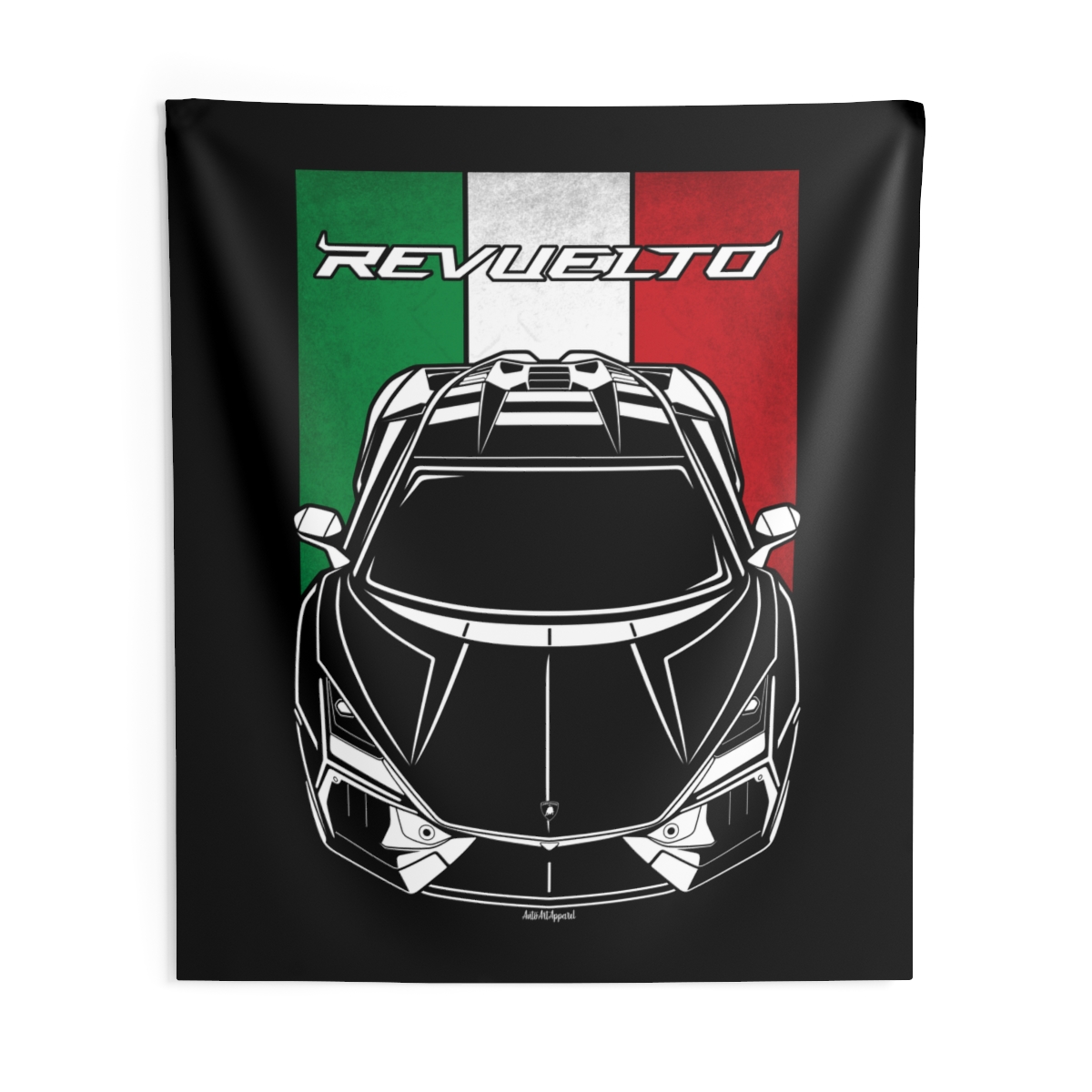 If the Lamborghini Revuelto is part of your lifestyle, this wall tapestry brings that energy into your personal space. Perfect for garages, gaming rooms, or creative setups that reflect real car culture. Flag detailing gives this version added depth and character. A great Lamborghini Revuelto tapestry for passionate drivers and enthusiasts.