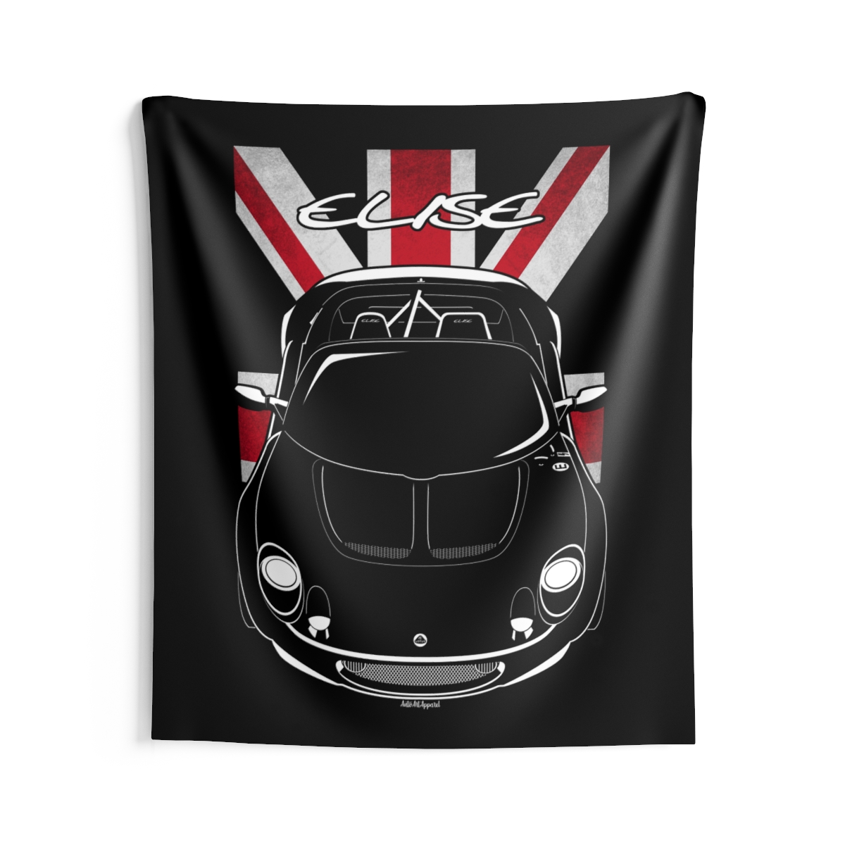 For those who connect with the Lotus Elise, this wall tapestry offers a larger canvas to showcase that passion. Designed to create atmosphere while staying visually balanced and refined. The flag styling introduces an extra layer of identity without overwhelming the design. An ideal Lotus Elise tapestry gift for dedicated automotive fans.