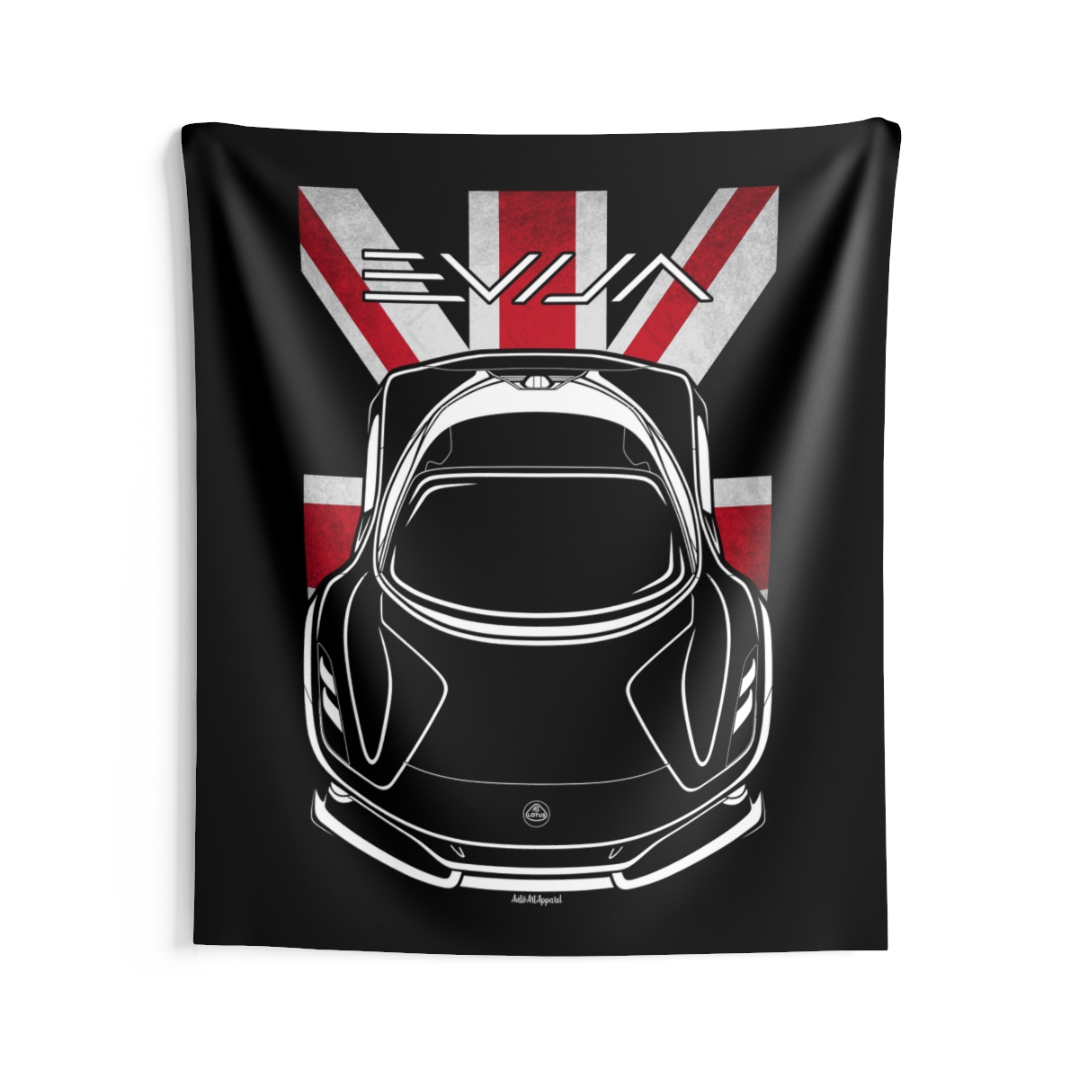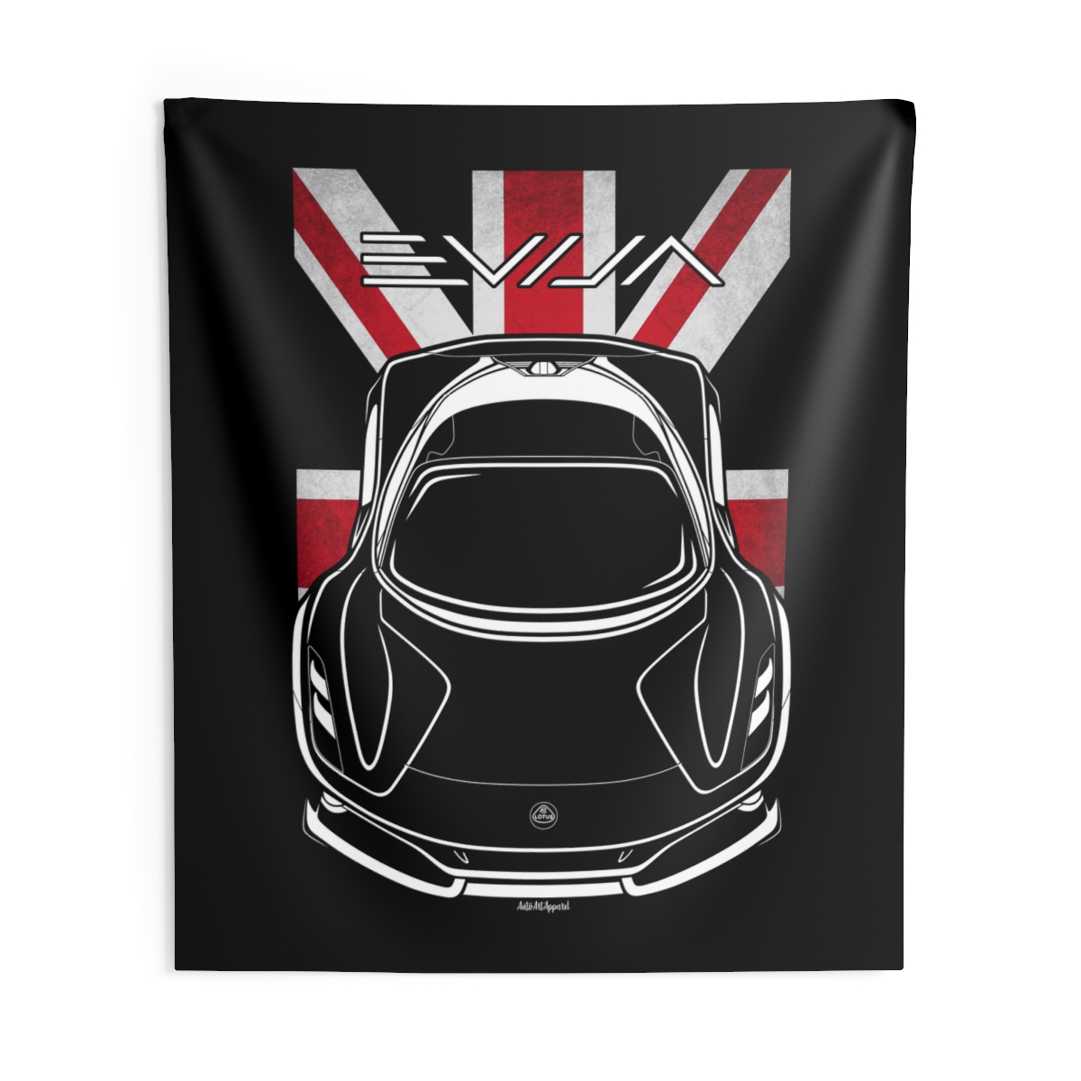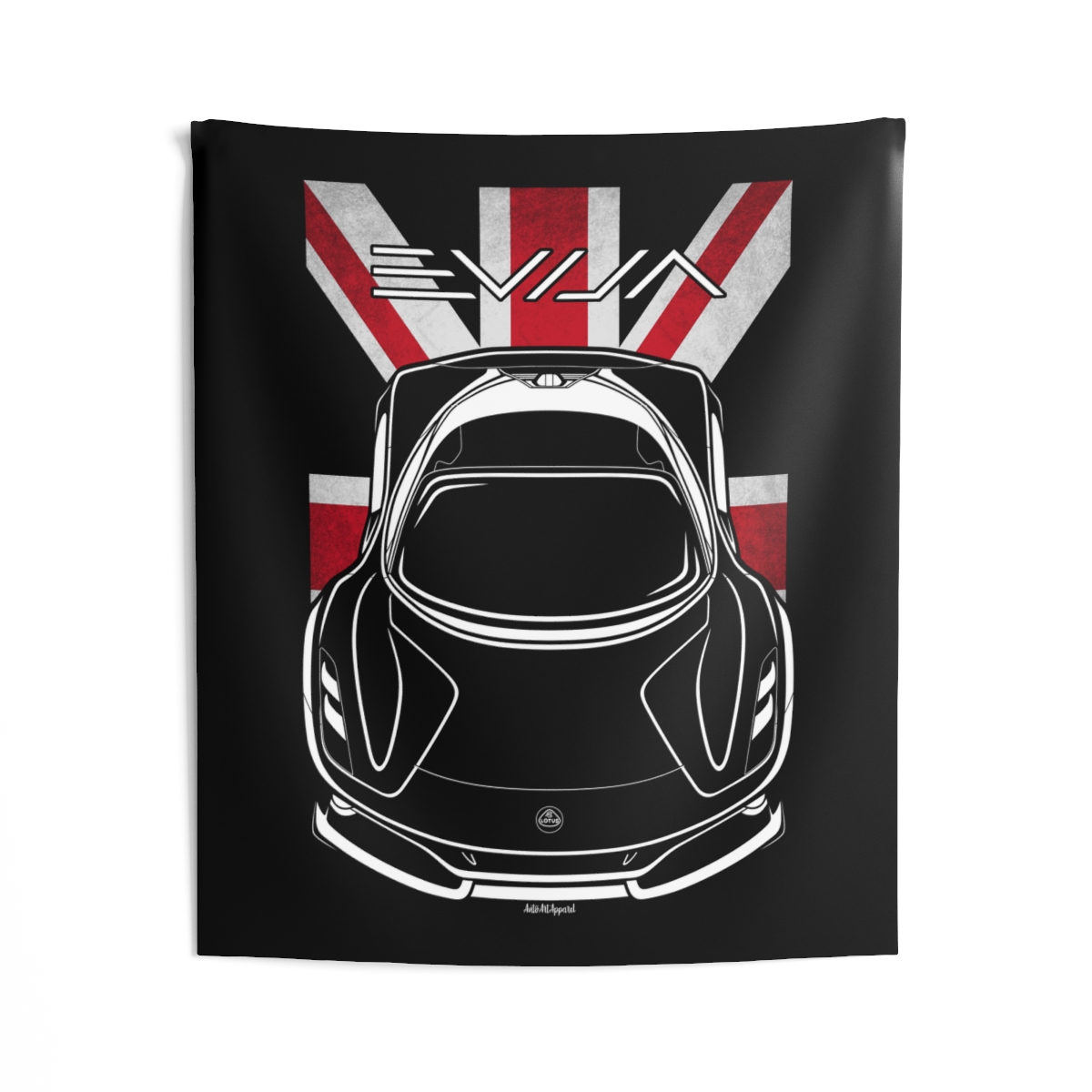 This Lotus Evija tapestry is made for enthusiasts who want their environment to reflect their automotive passion. Large-scale design, clean composition, and a clear respect for the car itself. The flag-inspired version introduces a distinctive accent tied to the car’s roots. A perfect Lotus Evija tapestry for serious car fans.