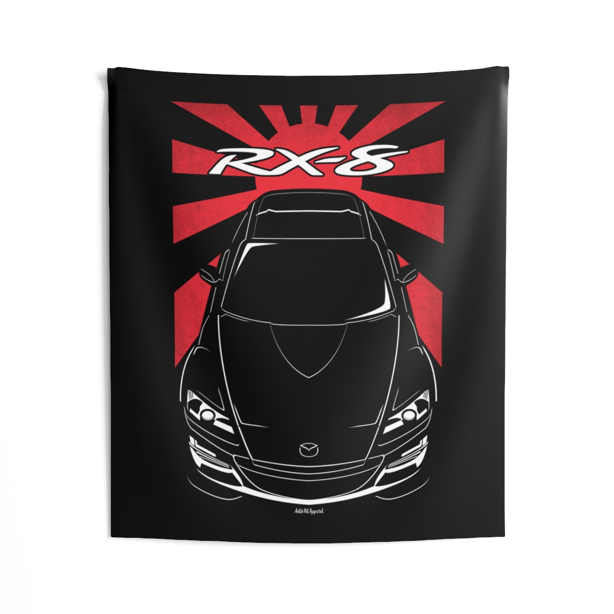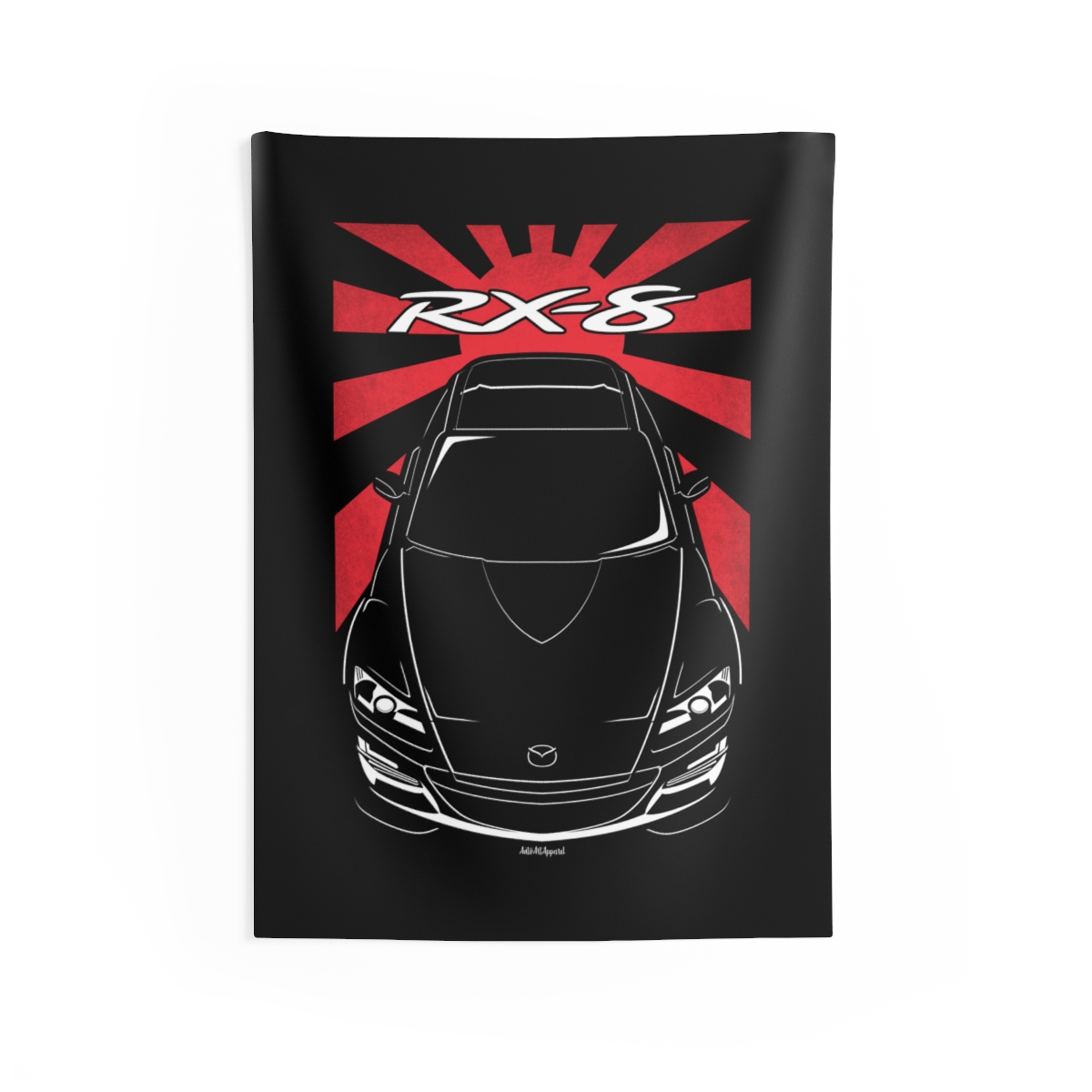 For those who connect with the Mazda RX-8, this wall tapestry offers a larger canvas to showcase that passion. Designed to create atmosphere while staying visually balanced and refined. The flag styling introduces an extra layer of identity without overwhelming the design. An ideal Mazda RX-8 tapestry gift for dedicated automotive fans.