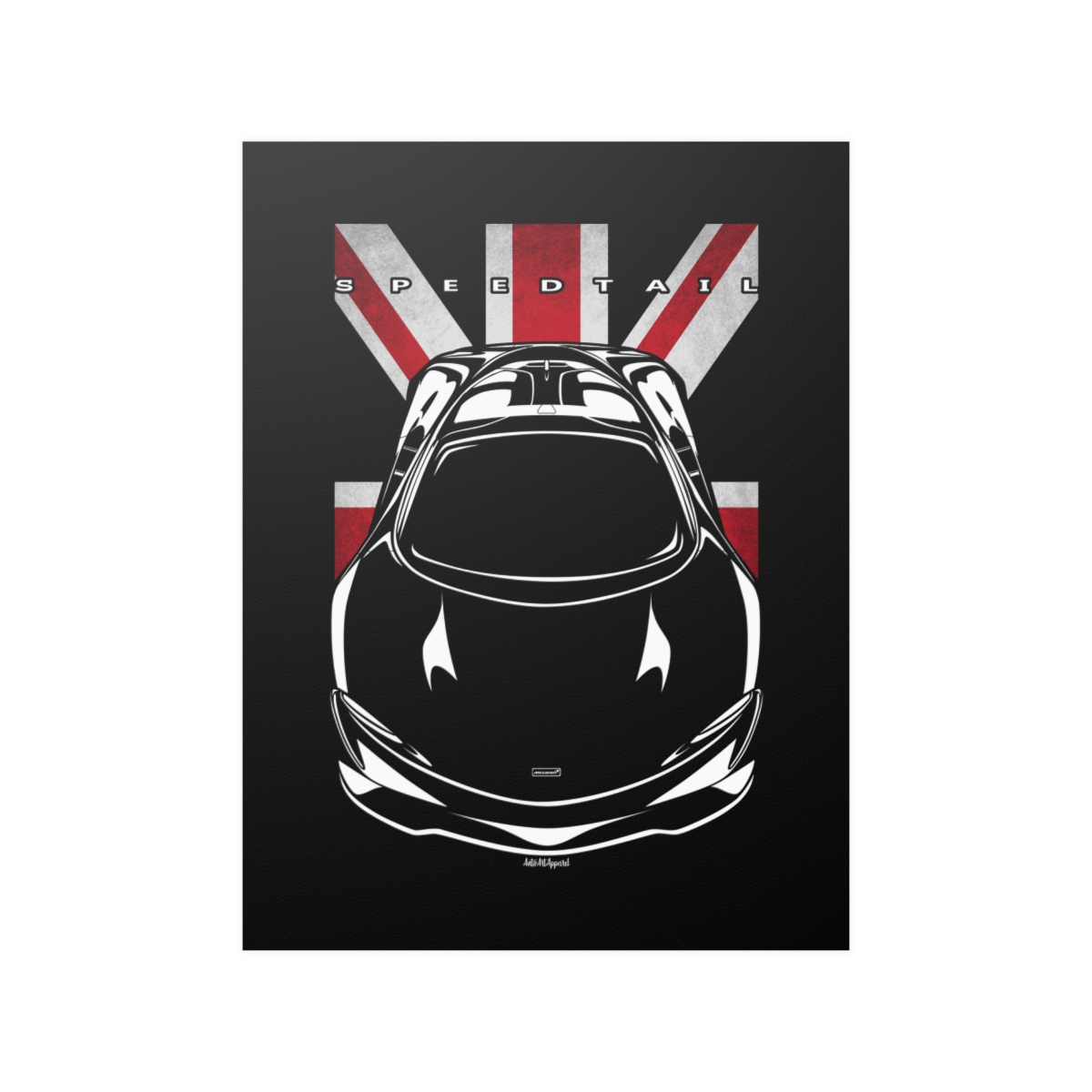 The McLaren Speedtail deserves more than a passing mention, it deserves wall space. This premium poster captures the presence of the car in a clean and refined format, perfect for garages, offices, or personal spaces. The flag version introduces a subtle heritage element that complements the artwork without overpowering it. A striking McLaren Speedtail poster gift for true automotive enthusiasts.