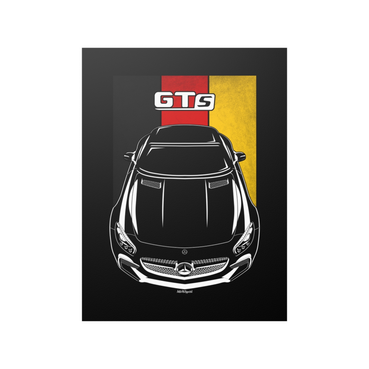 The Mercedes GT deserves more than a passing mention, it deserves wall space. This premium poster captures the presence of the car in a clean and refined format, perfect for garages, offices, or personal spaces. The flag version introduces a subtle heritage element that complements the artwork without overpowering it. A striking Mercedes GT poster gift for true automotive enthusiasts.
