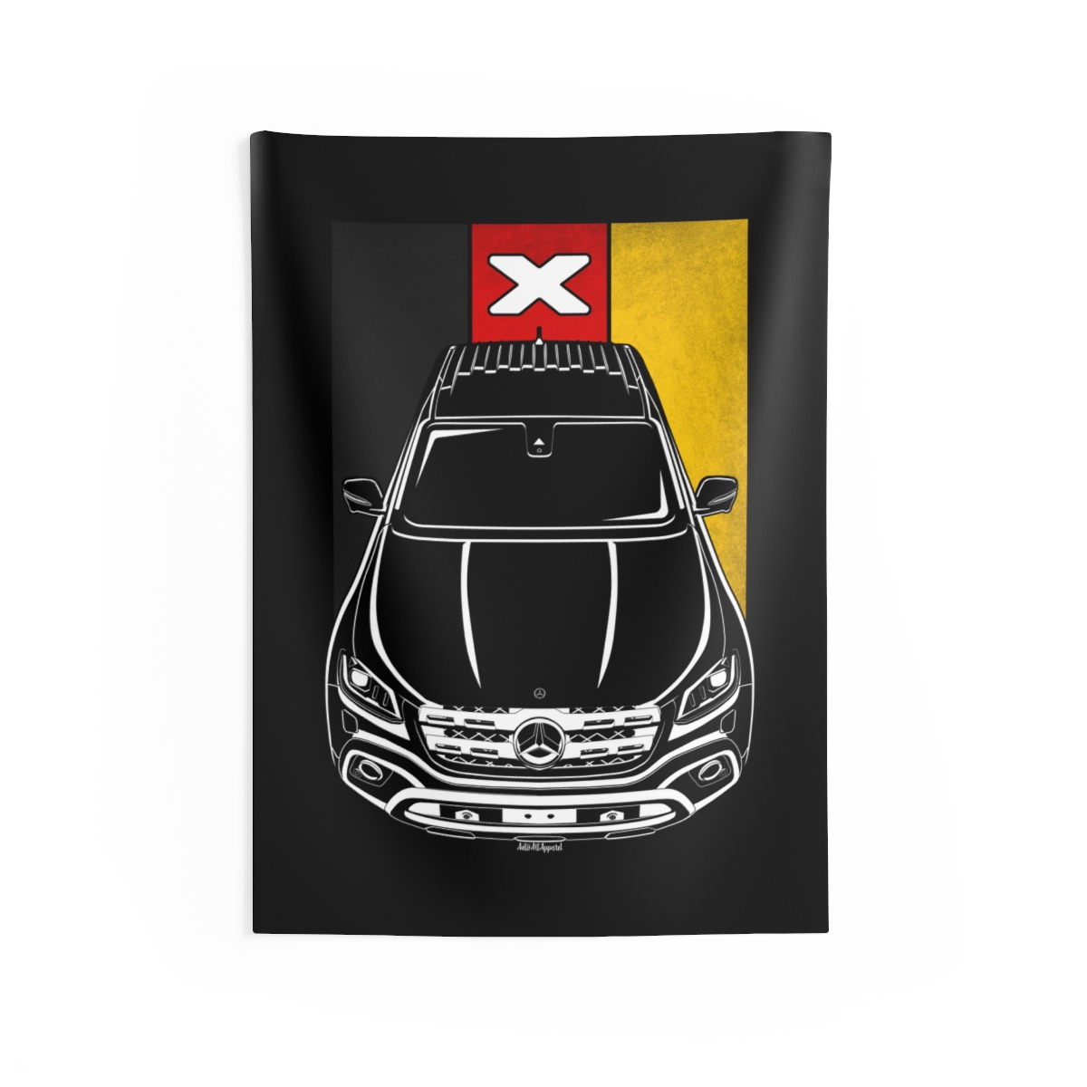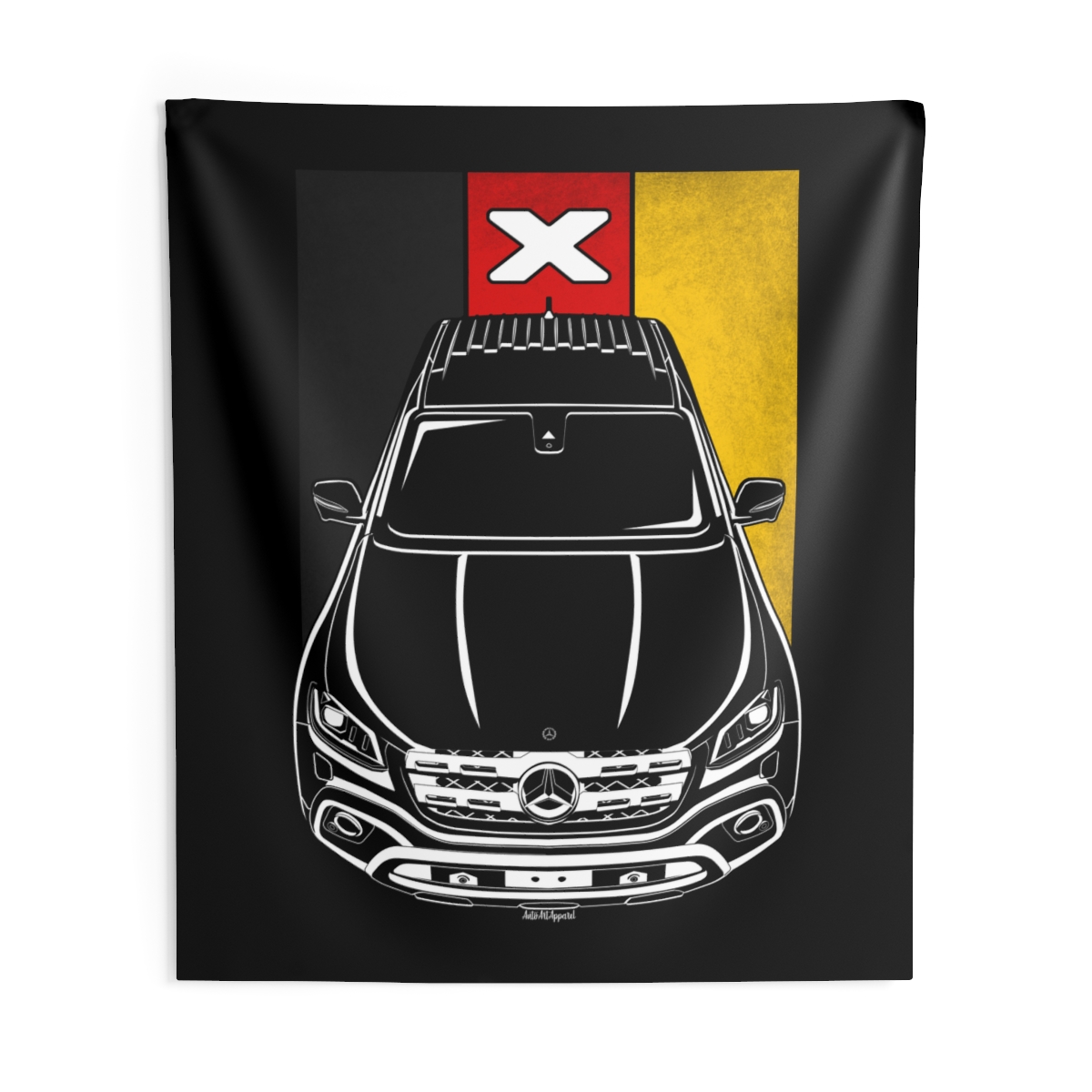 The Mercedes X-Class commands attention on the road, and now it can do the same on your wall. This tapestry transforms garages, studios, and living spaces with a bold yet clean automotive presence. The flag version adds a subtle heritage accent that enhances the overall impact. A standout Mercedes X-Class tapestry gift for true car enthusiasts.