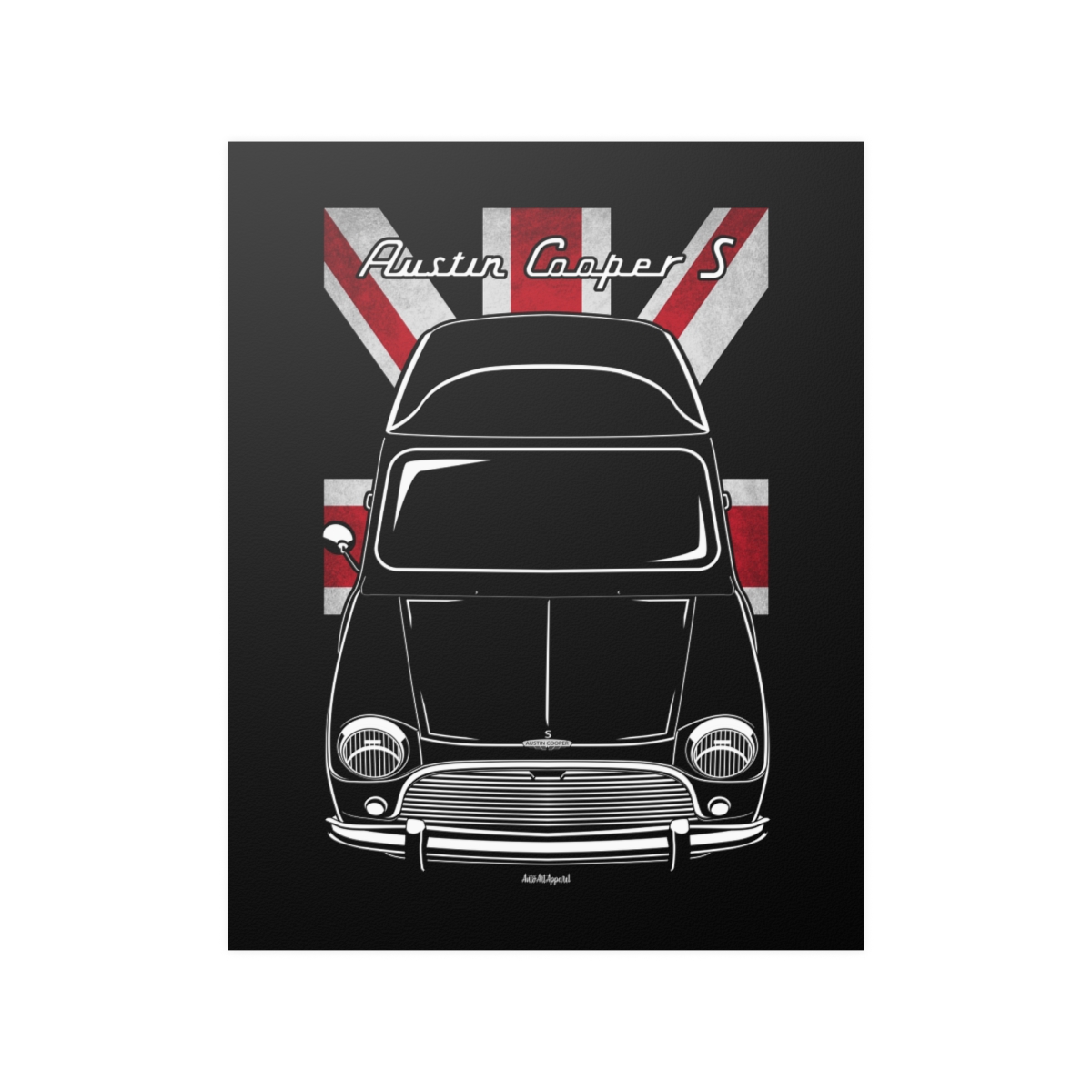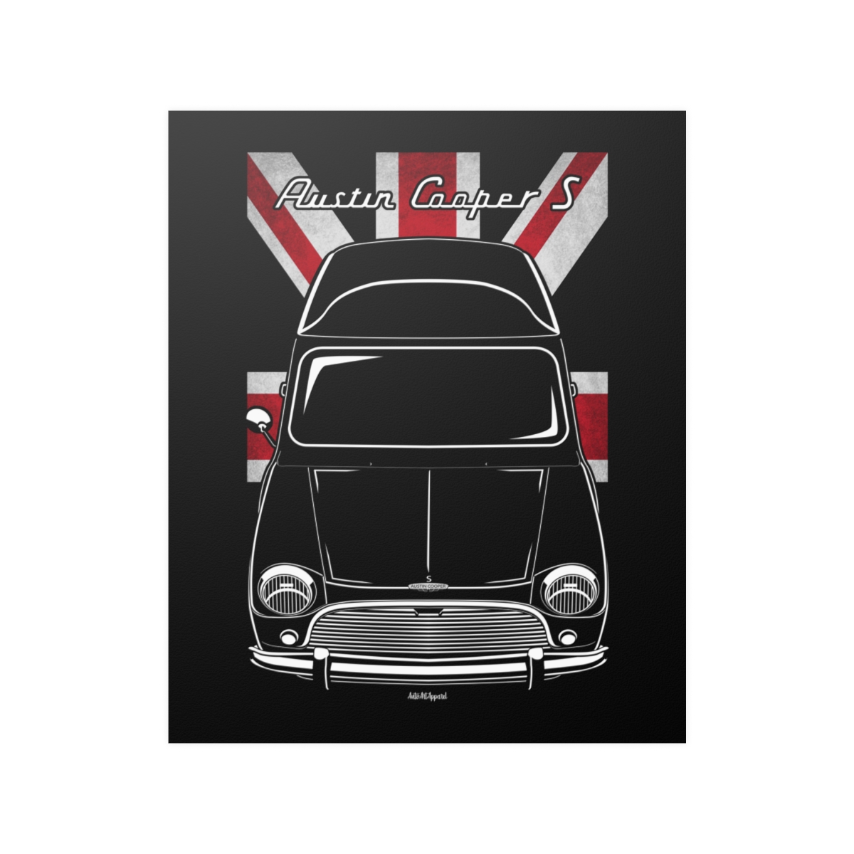 For fans of the Mini Cooper, this poster brings the car’s character into your space with a balanced, detail-focused design. Made to stand out without feeling excessive. The flag styling adds a tasteful layer of identity and origin. An ideal Mini Cooper poster gift for dedicated car lovers.