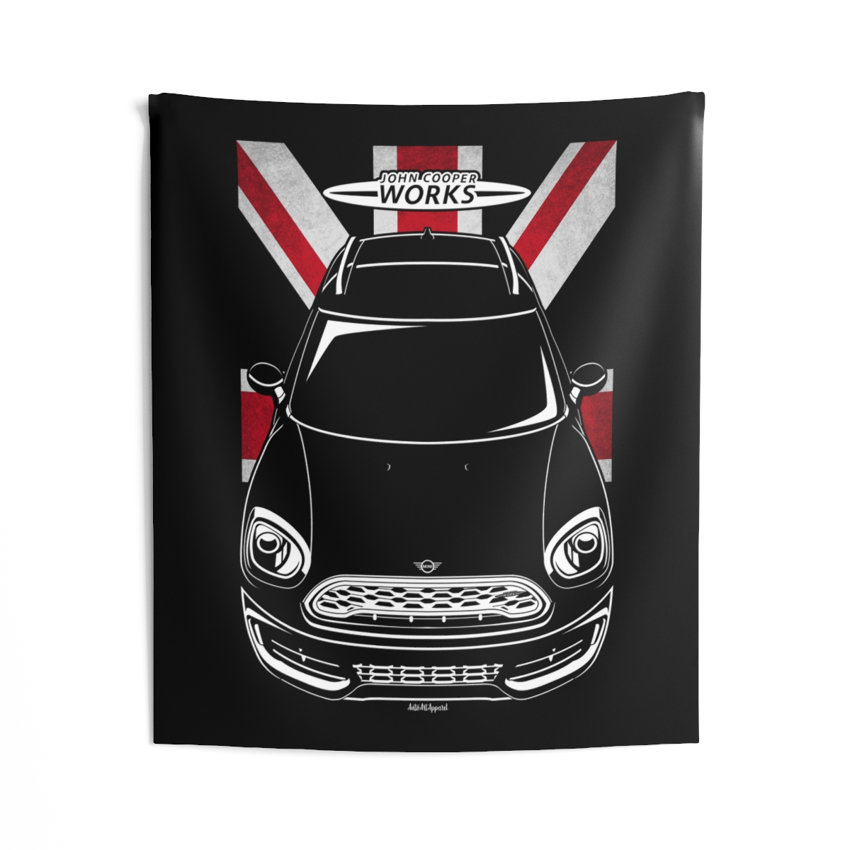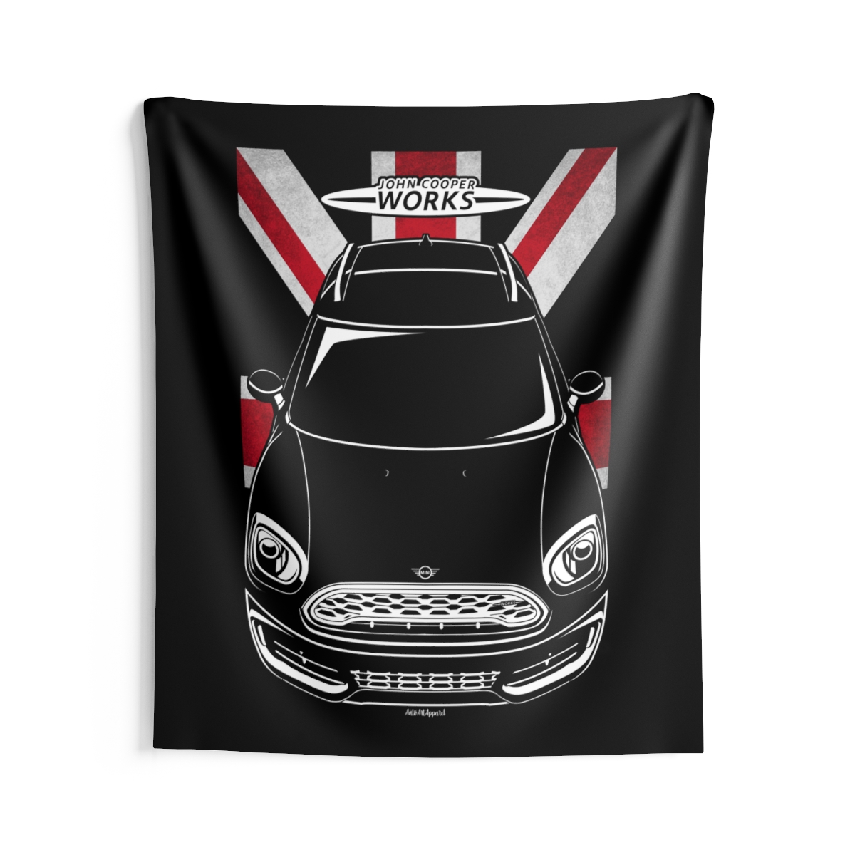 This Mini Cooper tapestry is made for enthusiasts who want their environment to reflect their automotive passion. Large-scale design, clean composition, and a clear respect for the car itself. The flag-inspired version introduces a distinctive accent tied to the car’s roots. A perfect Mini Cooper tapestry for serious car fans.