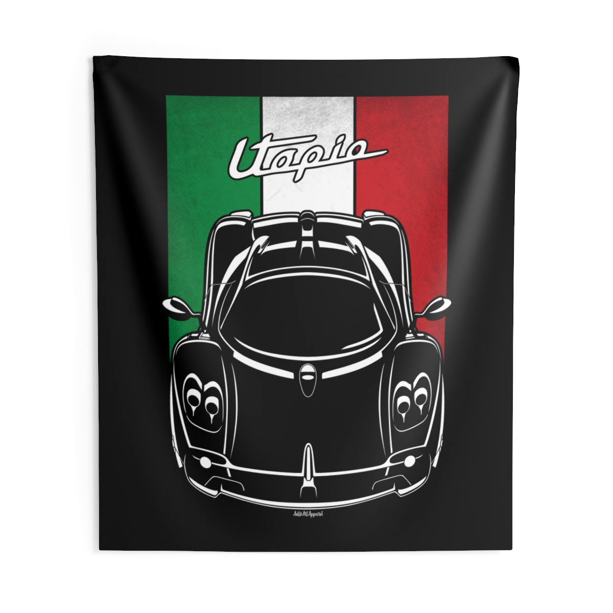 The Pagani Utopia commands attention on the road, and now it can do the same on your wall. This tapestry transforms garages, studios, and living spaces with a bold yet clean automotive presence. The flag version adds a subtle heritage accent that enhances the overall impact. A standout Pagani Utopia tapestry gift for true car enthusiasts.