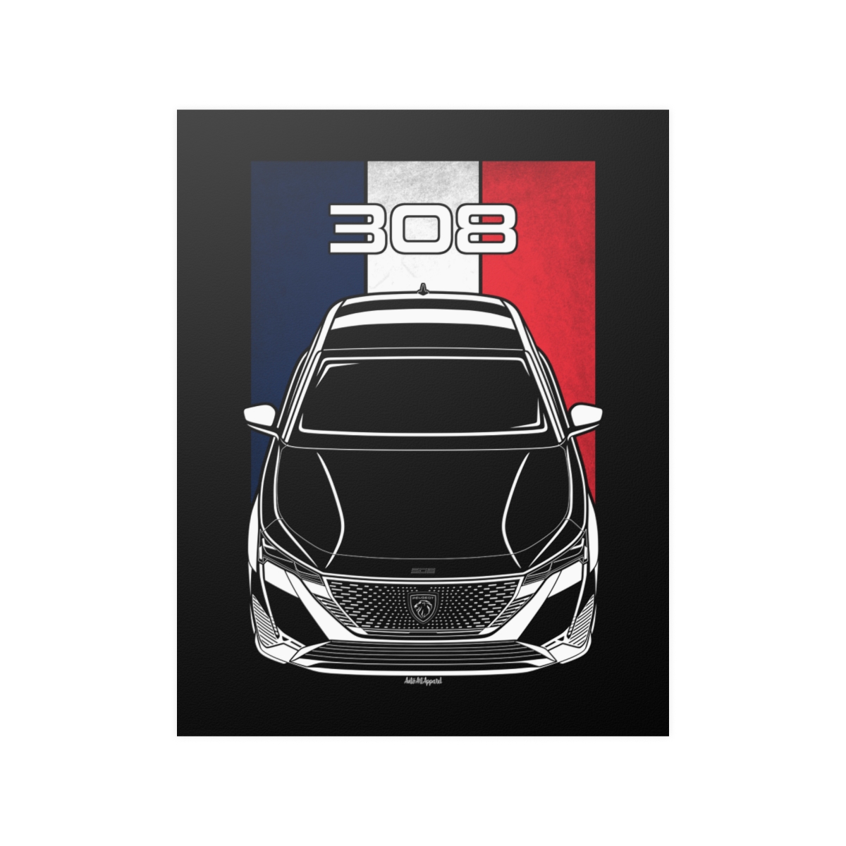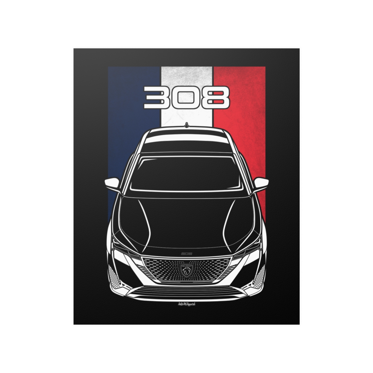 True appreciation for the Peugeot 308 extends beyond driving it. This poster offers a refined way to showcase that admiration through high-quality automotive artwork. The flag variant adds a heritage-inspired touch to the overall design. An excellent Peugeot 308 poster gift idea.