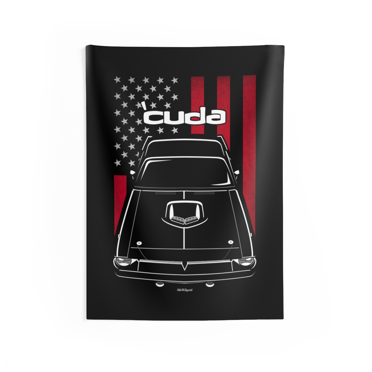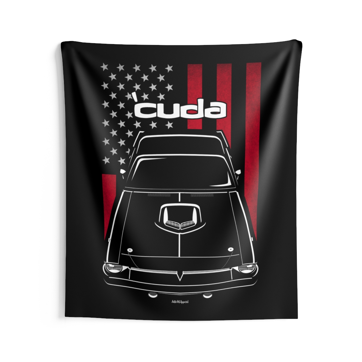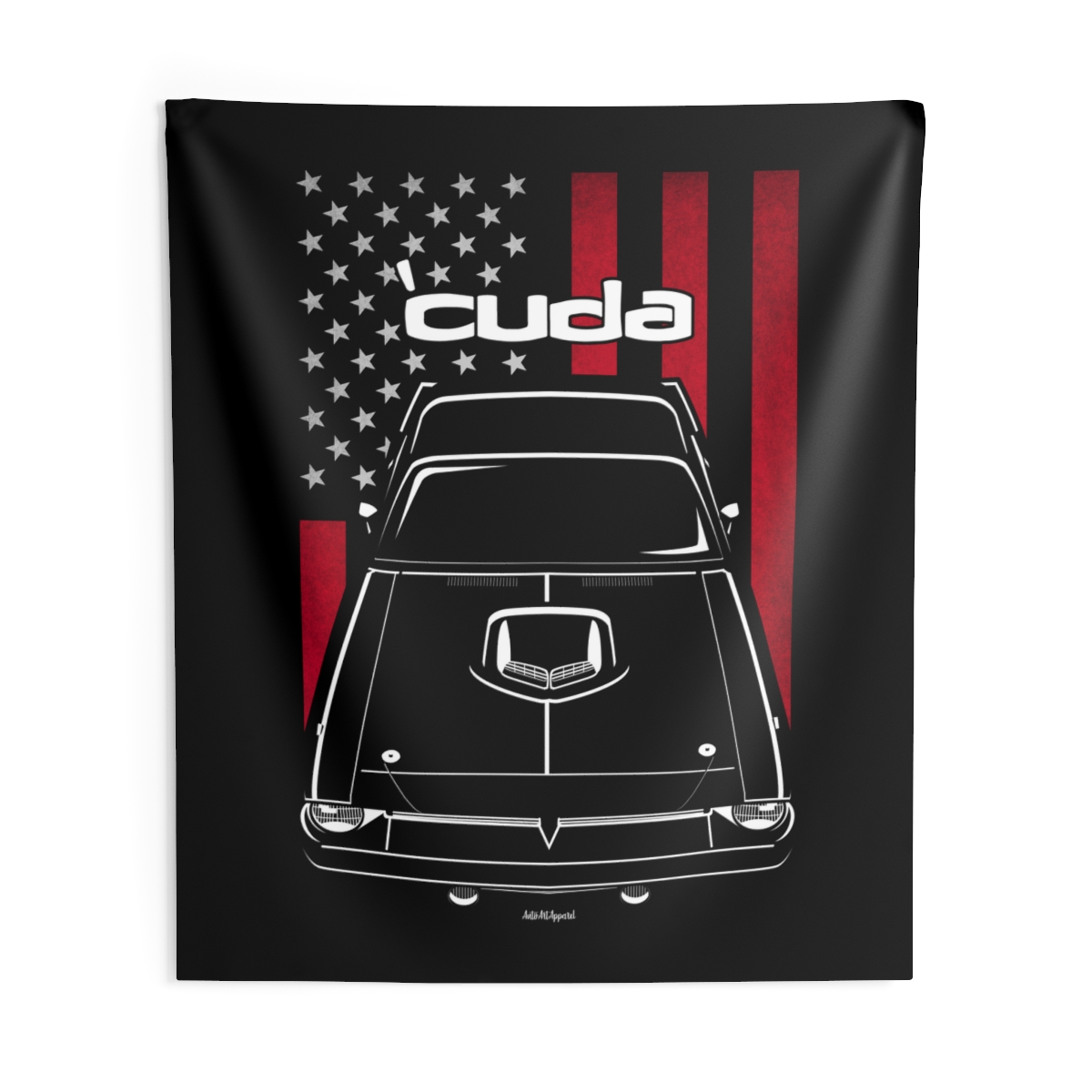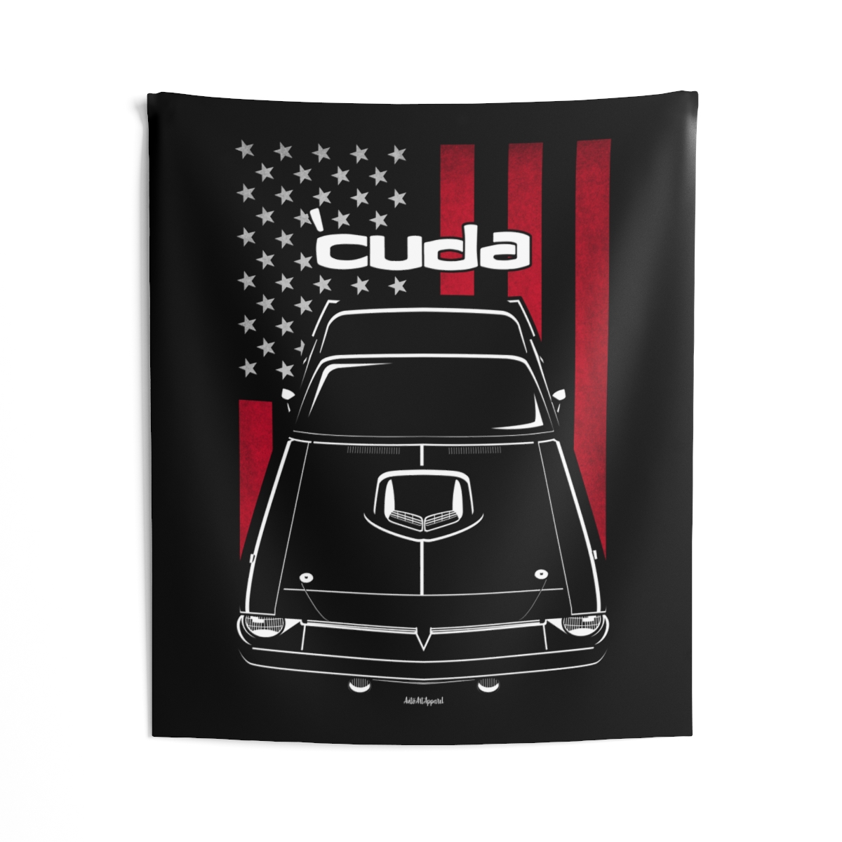 This Plymouth Barracuda tapestry is made for enthusiasts who want their environment to reflect their automotive passion. Large-scale design, clean composition, and a clear respect for the car itself. The flag-inspired version introduces a distinctive accent tied to the car’s roots. A perfect Plymouth Barracuda tapestry for serious car fans.