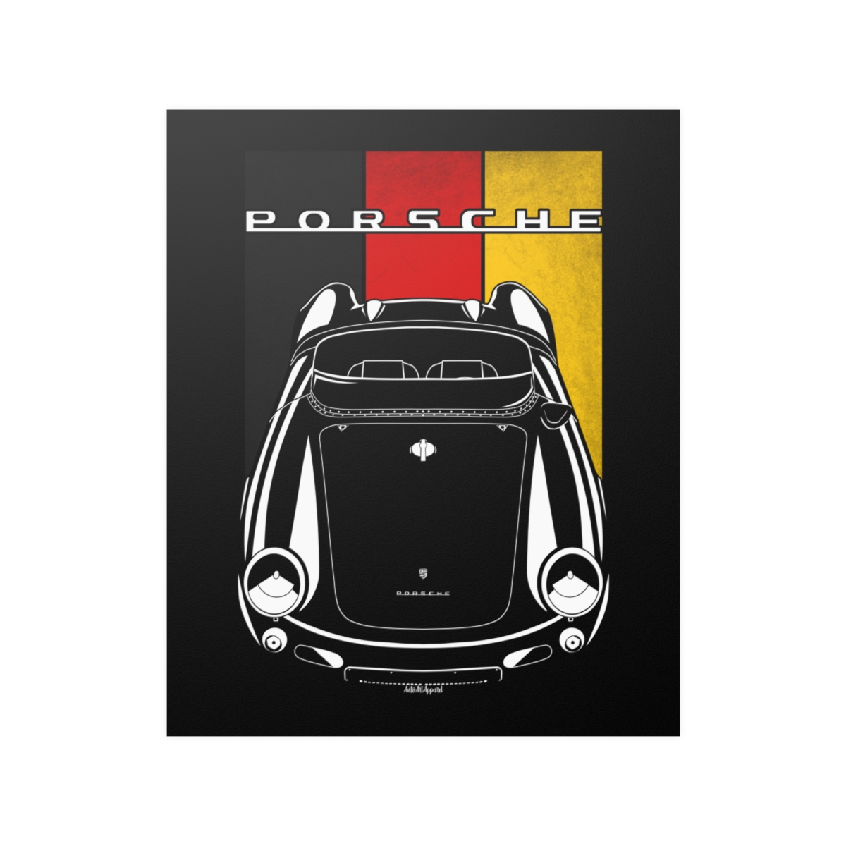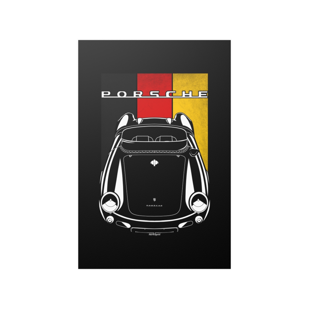 For fans of the Porsche 550, this poster brings the car’s character into your space with a balanced, detail-focused design. Made to stand out without feeling excessive. The flag styling adds a tasteful layer of identity and origin. An ideal Porsche 550 poster gift for dedicated car lovers.