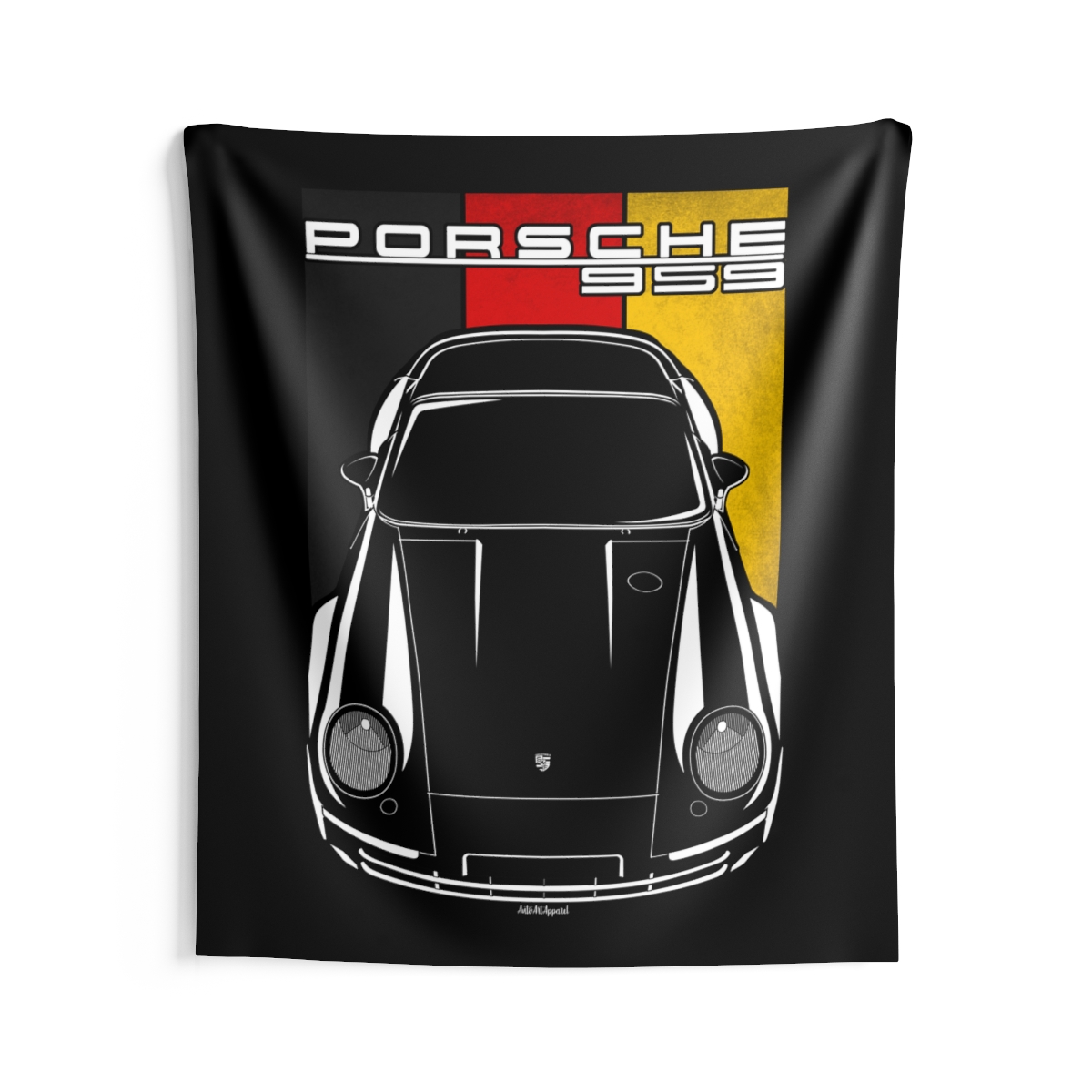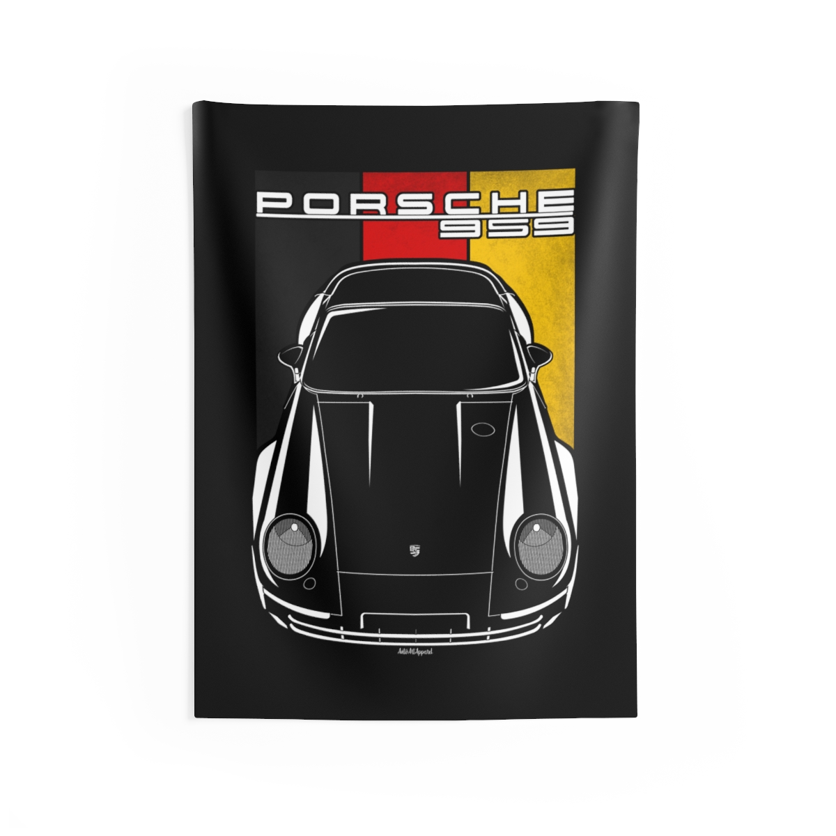 The spirit of the Porsche 959 extends beyond the driveway. This tapestry delivers a bold visual statement while maintaining a clean and tasteful look. This edition includes subtle flag elements that strengthen the connection to the car’s origin. A thoughtful Porsche 959 tapestry gift for automotive enthusiasts.