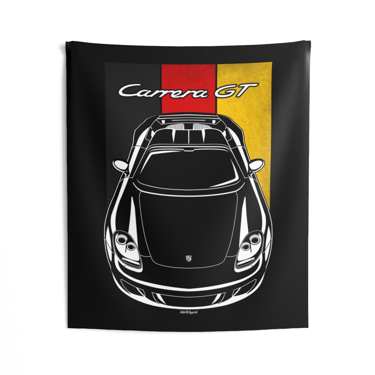 If the Porsche Carrera GT is part of your lifestyle, this wall tapestry brings that energy into your personal space. Perfect for garages, gaming rooms, or creative setups that reflect real car culture. Flag detailing gives this version added depth and character. A great Porsche Carrera GT tapestry for passionate drivers and enthusiasts.