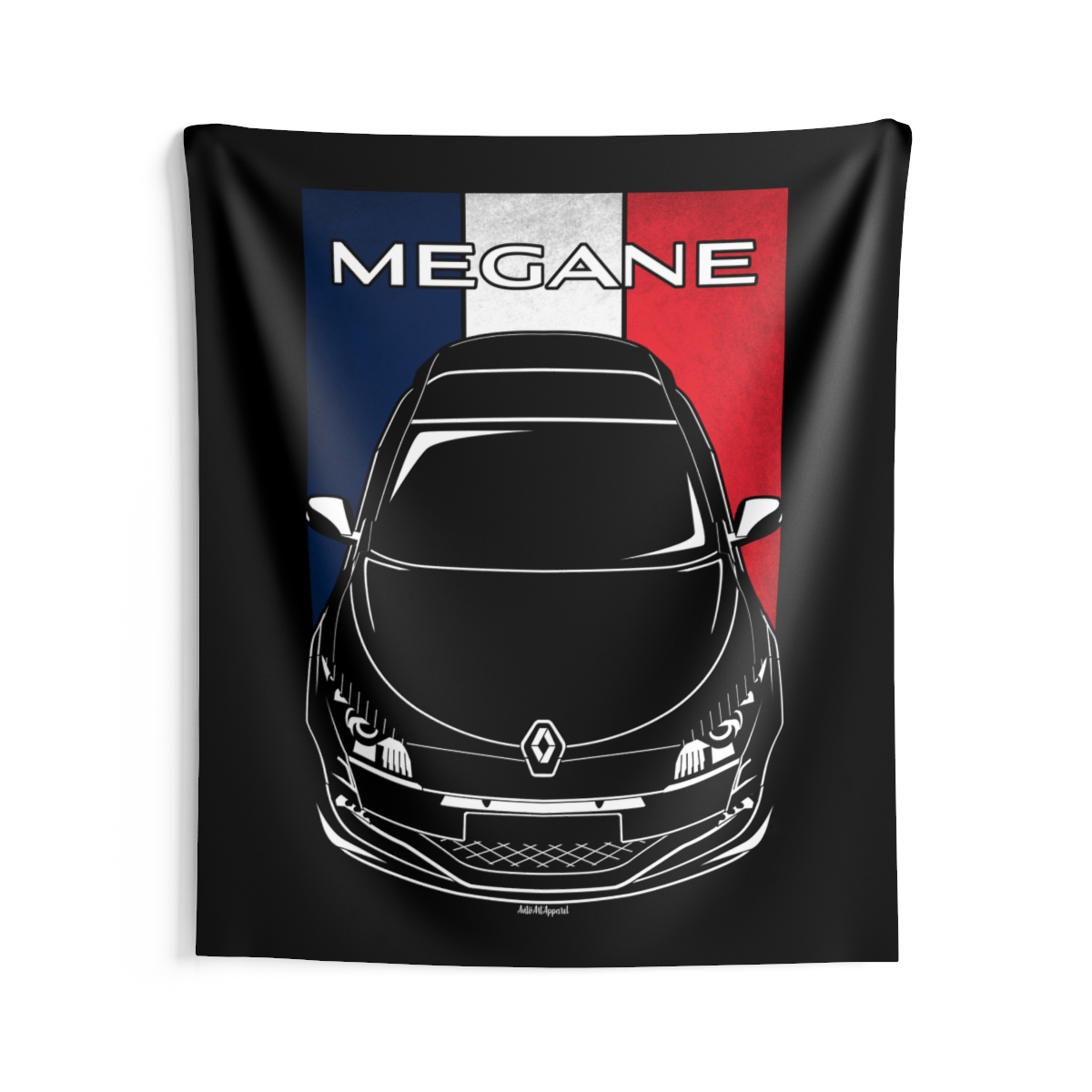 For those who connect with the Renault Megane, this wall tapestry offers a larger canvas to showcase that passion. Designed to create atmosphere while staying visually balanced and refined. The flag styling introduces an extra layer of identity without overwhelming the design. An ideal Renault Megane tapestry gift for dedicated automotive fans.