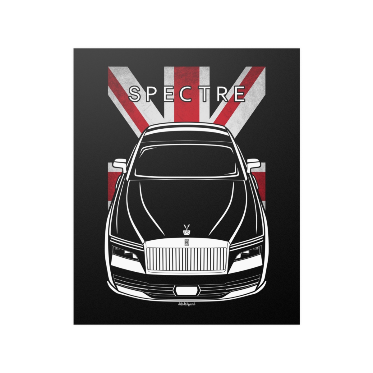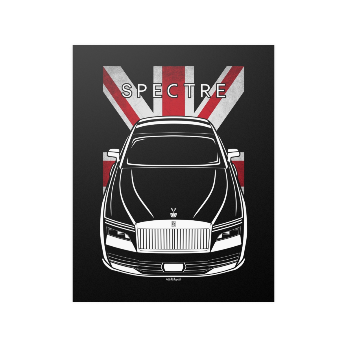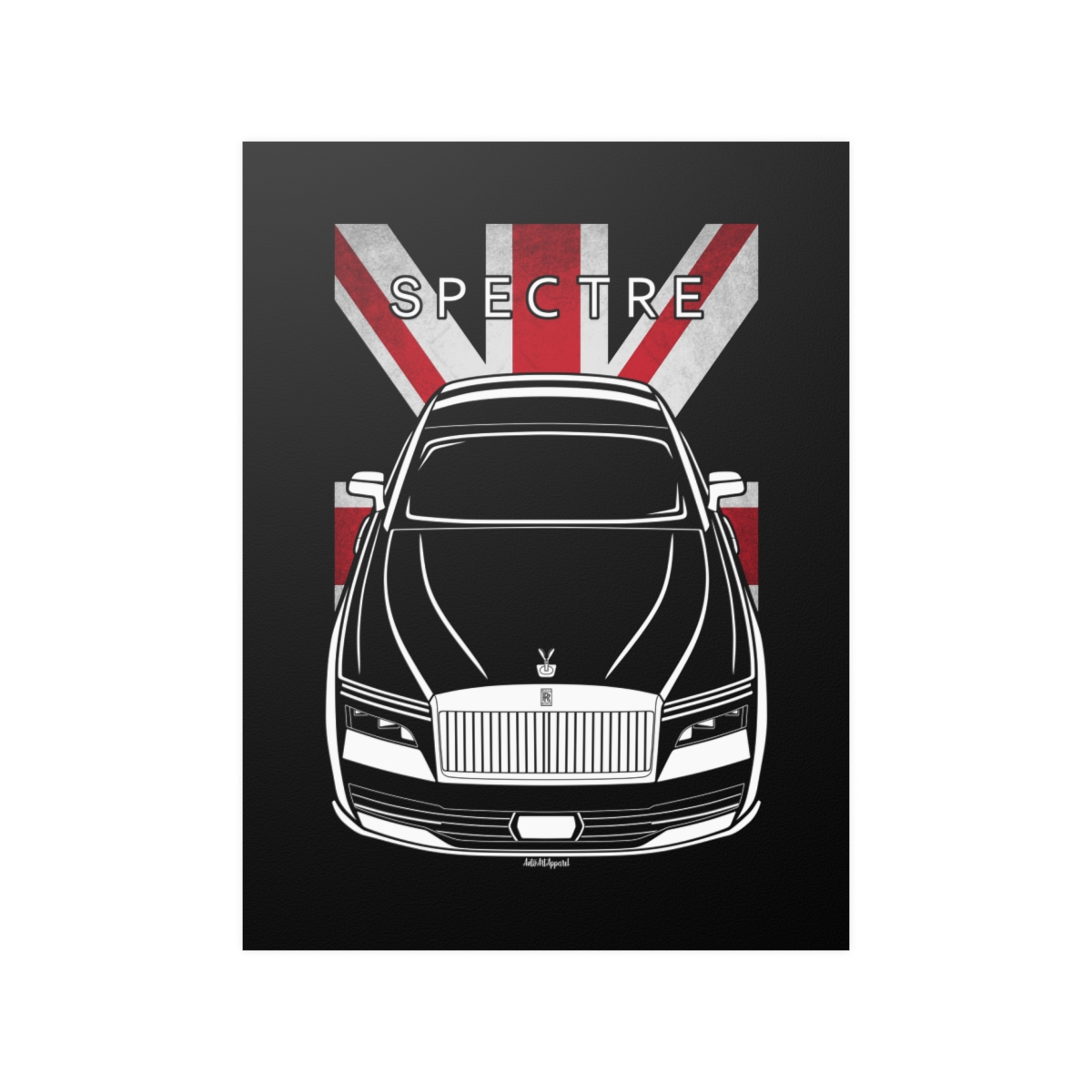 True appreciation for the Rolls Royce Spectre extends beyond driving it. This poster offers a refined way to showcase that admiration through high-quality automotive artwork. The flag variant adds a heritage-inspired touch to the overall design. An excellent Rolls Royce Spectre poster gift idea.