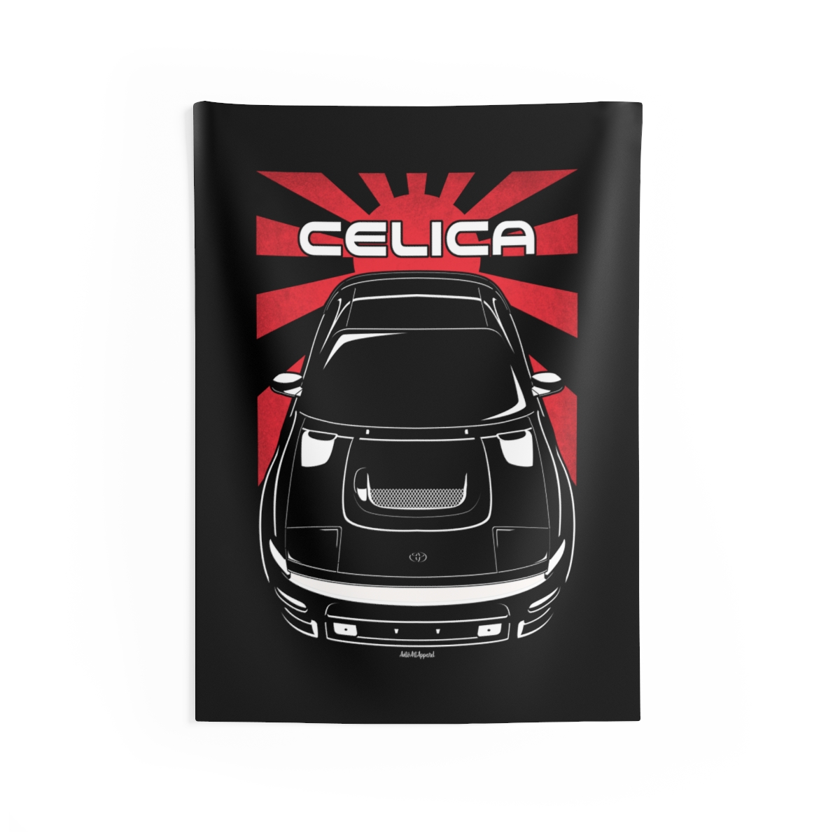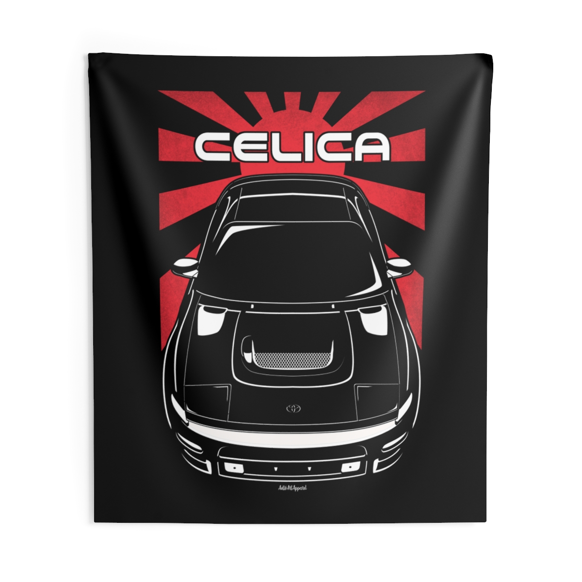 The spirit of the Toyota Celica extends beyond the driveway. This tapestry delivers a bold visual statement while maintaining a clean and tasteful look. This edition includes subtle flag elements that strengthen the connection to the car’s origin. A thoughtful Toyota Celica tapestry gift for automotive enthusiasts.