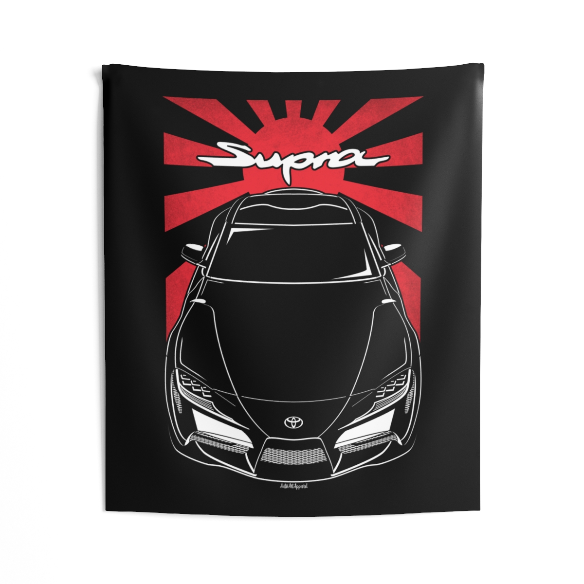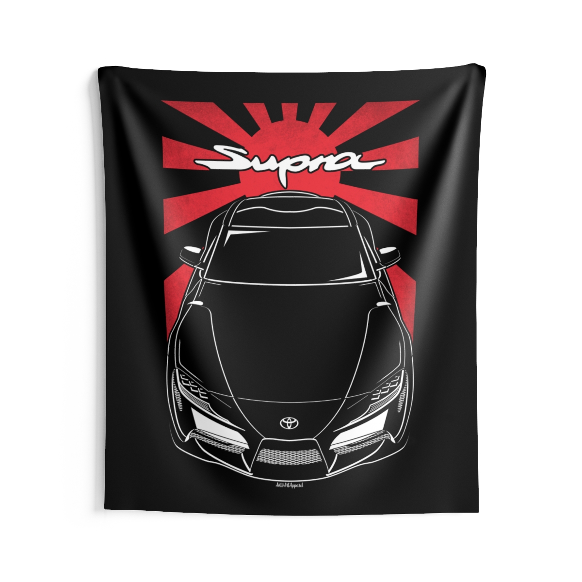The spirit of the Toyota Supra extends beyond the driveway. This tapestry delivers a bold visual statement while maintaining a clean and tasteful look. This edition includes subtle flag elements that strengthen the connection to the car’s origin. A thoughtful Toyota Supra tapestry gift for automotive enthusiasts.