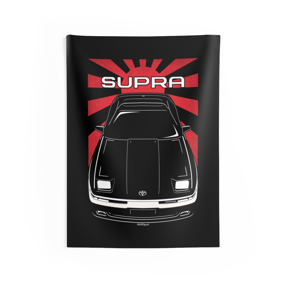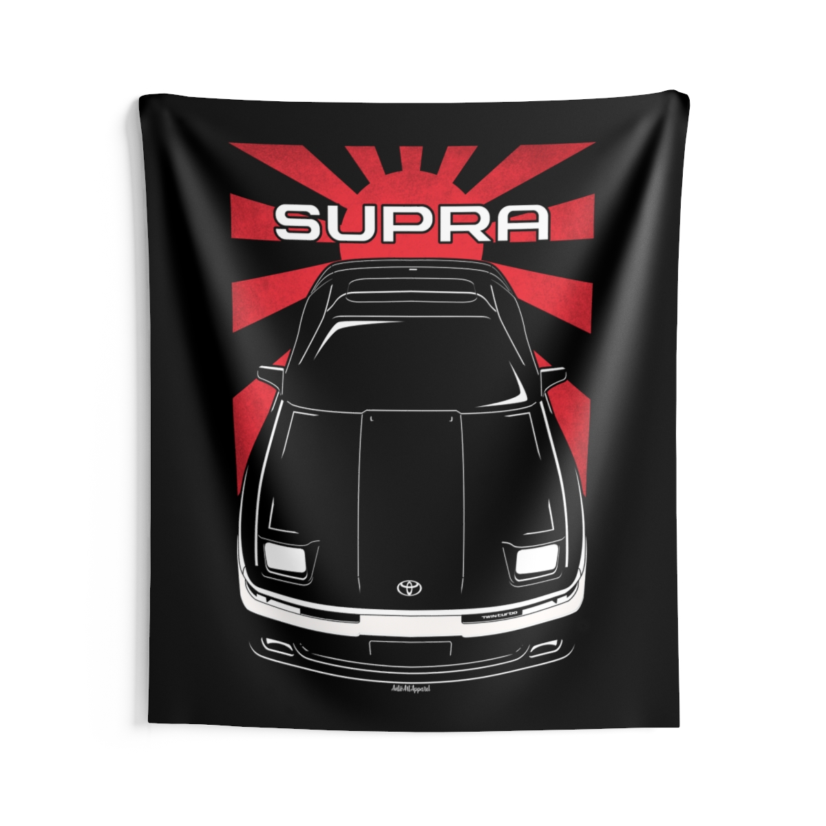 For those who connect with the Toyota Supra, this wall tapestry offers a larger canvas to showcase that passion. Designed to create atmosphere while staying visually balanced and refined. The flag styling introduces an extra layer of identity without overwhelming the design. An ideal Toyota Supra tapestry gift for dedicated automotive fans.