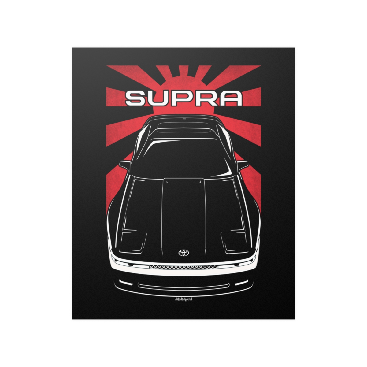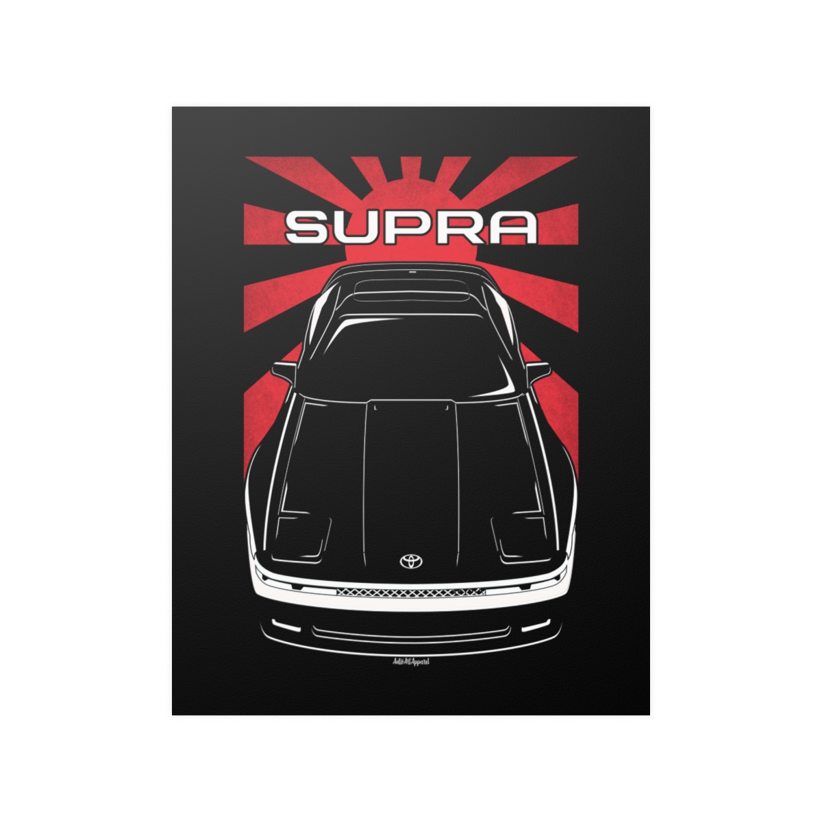 The Toyota Supra deserves more than a passing mention, it deserves wall space. This premium poster captures the presence of the car in a clean and refined format, perfect for garages, offices, or personal spaces. The flag version introduces a subtle heritage element that complements the artwork without overpowering it. A striking Toyota Supra poster gift for true automotive enthusiasts.