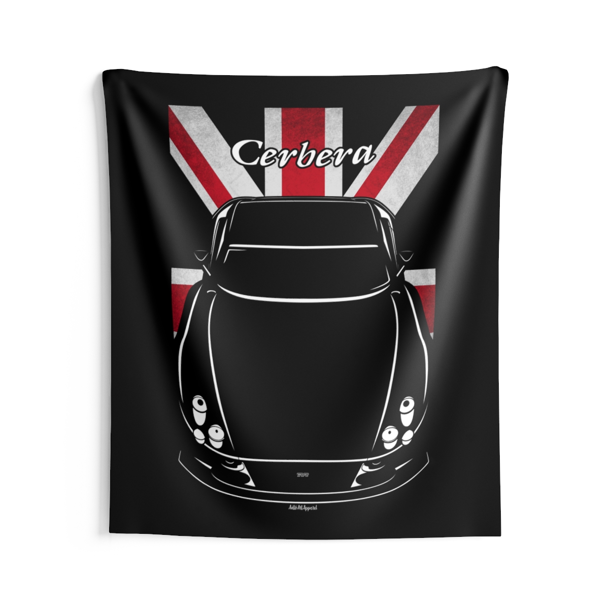 This TVR Cerbera tapestry is made for enthusiasts who want their environment to reflect their automotive passion. Large-scale design, clean composition, and a clear respect for the car itself. The flag-inspired version introduces a distinctive accent tied to the car’s roots. A perfect TVR Cerbera tapestry for serious car fans.
