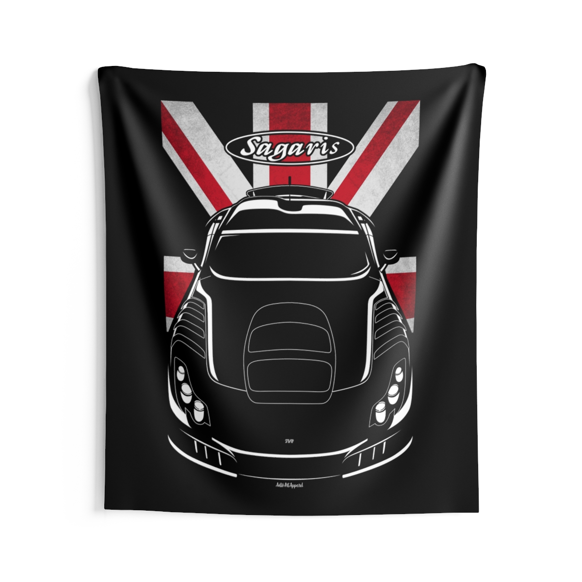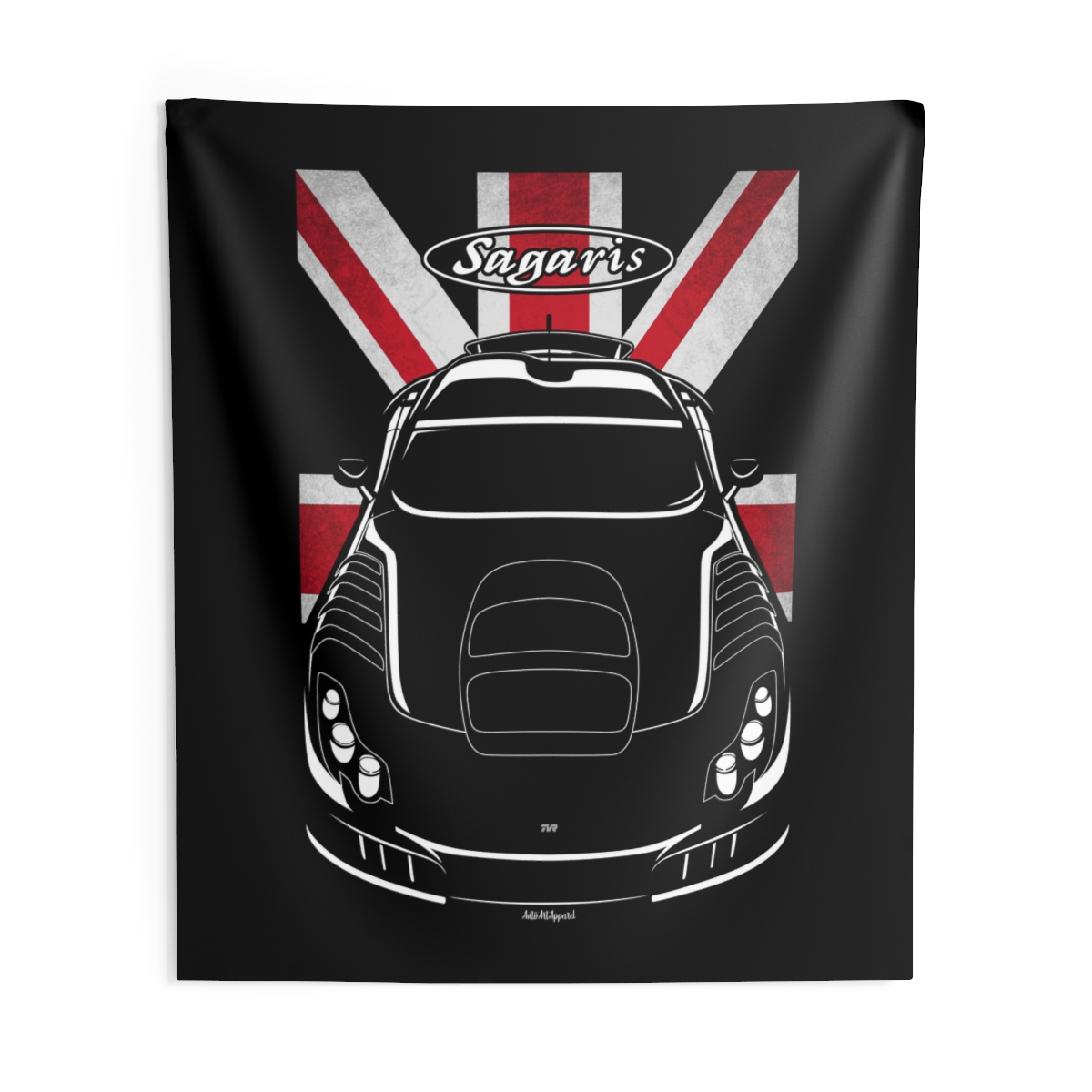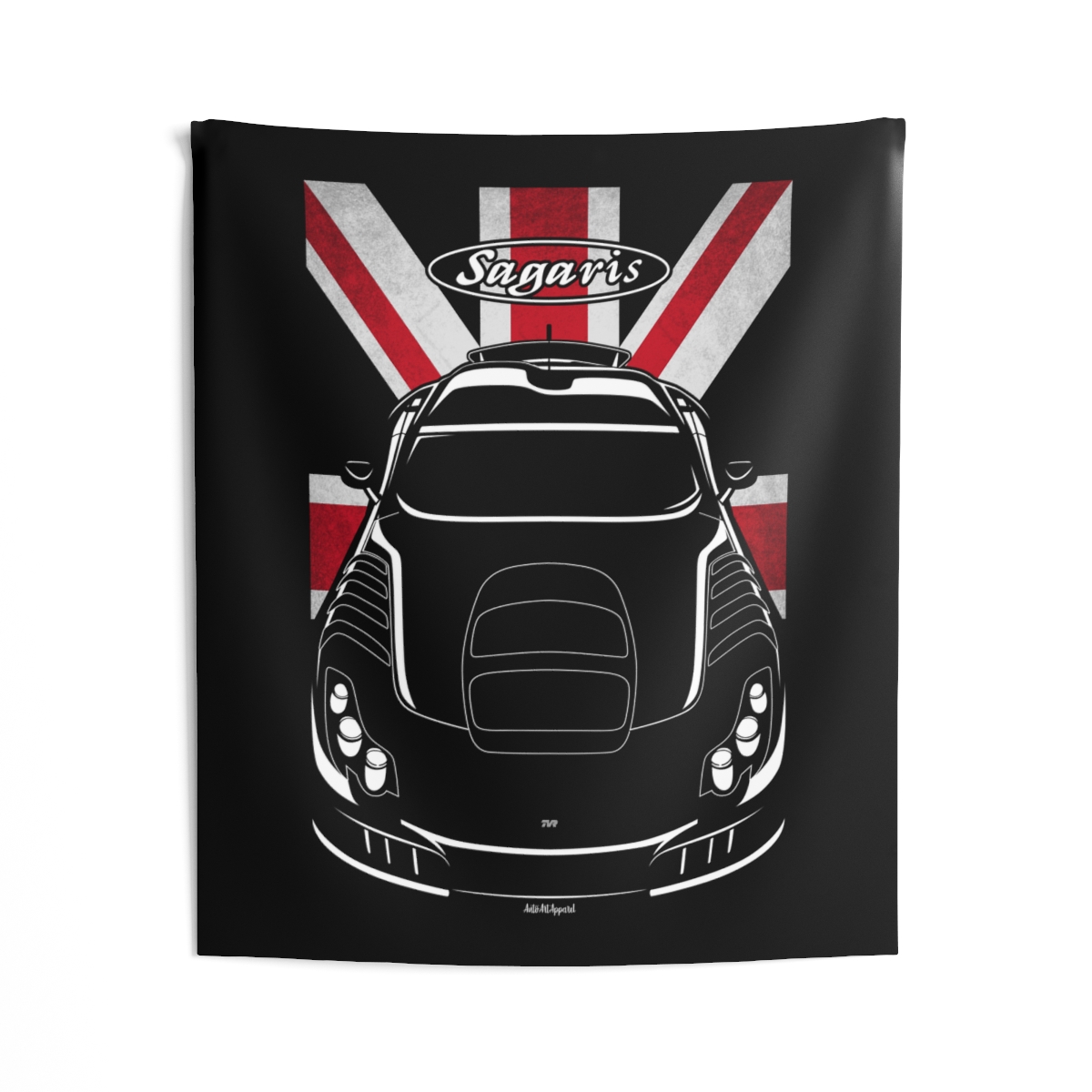 The TVR Sagaris commands attention on the road, and now it can do the same on your wall. This tapestry transforms garages, studios, and living spaces with a bold yet clean automotive presence. The flag version adds a subtle heritage accent that enhances the overall impact. A standout TVR Sagaris tapestry gift for true car enthusiasts.
