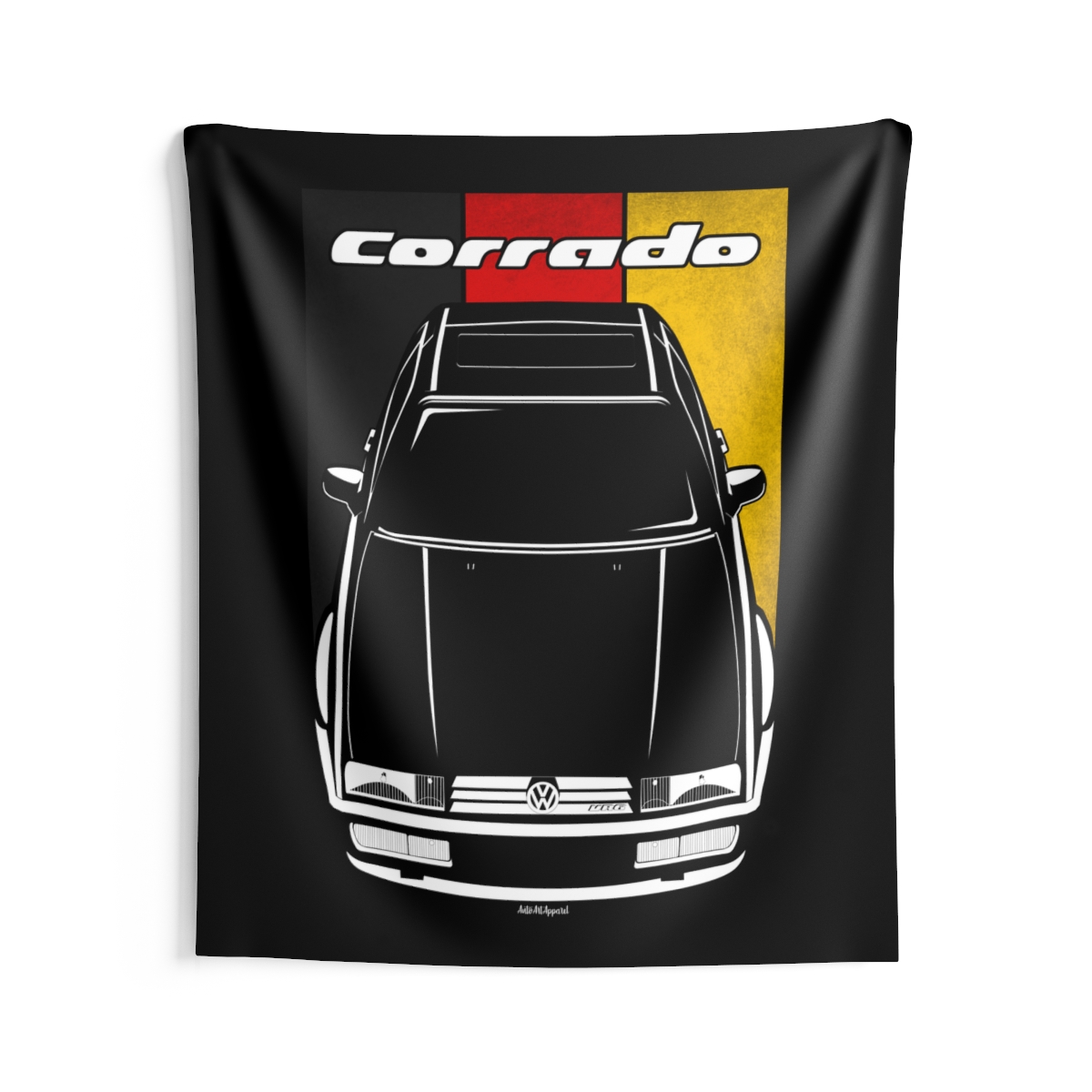 For those who connect with the Volkswagen Corrado, this wall tapestry offers a larger canvas to showcase that passion. Designed to create atmosphere while staying visually balanced and refined. The flag styling introduces an extra layer of identity without overwhelming the design. An ideal Volkswagen Corrado tapestry gift for dedicated automotive fans.