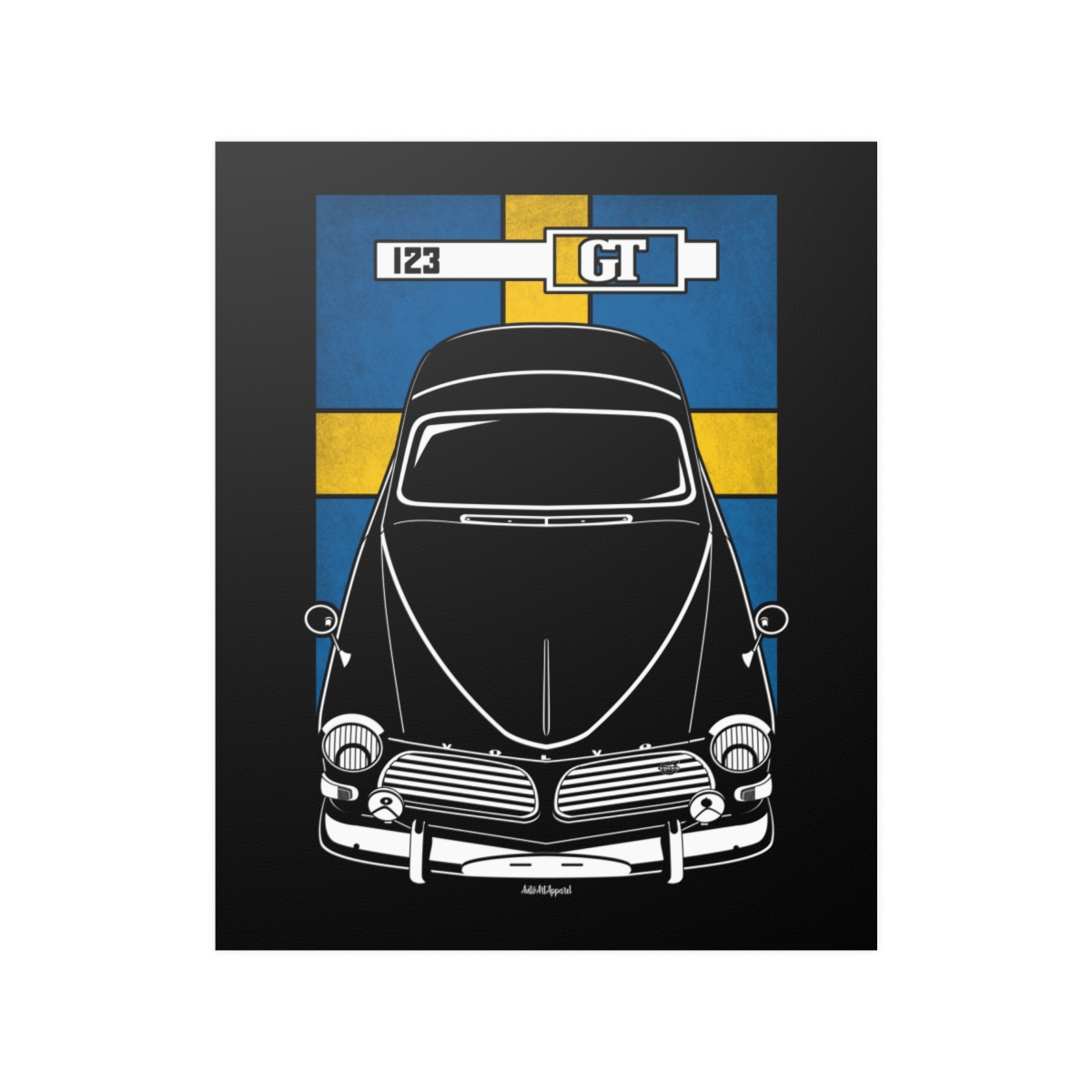 True appreciation for the Volvo 123GT extends beyond driving it. This poster offers a refined way to showcase that admiration through high-quality automotive artwork. The flag variant adds a heritage-inspired touch to the overall design. An excellent Volvo 123GT poster gift idea.